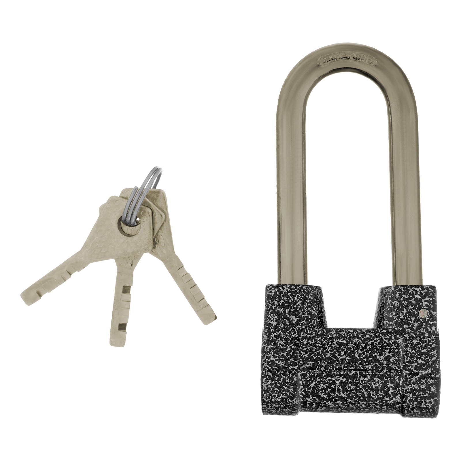 - Прочность и долговечность — корпус выполнен из чугуна, а дужка из стали.