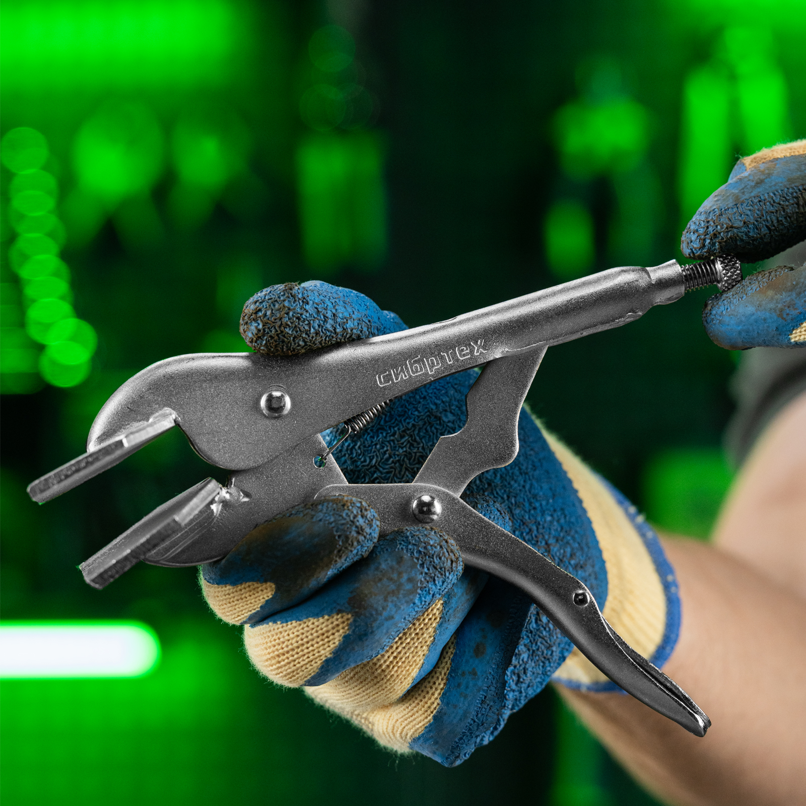 Зажим ручной Сибртех 18431 длиной 205 мм — слесарно-монтажный инструмент, предназначенный для фиксации и удержания заготовок. Имеет широкие плоские губки, поэтому эффективен при работе с листовыми материалами. Зажим используется в профессиональной и частной сфере.