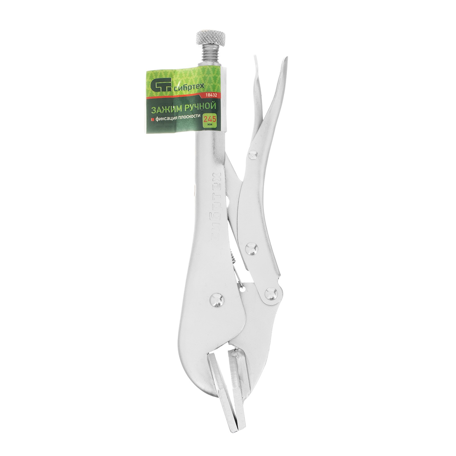 Зажим ручной Сибртех 18432 длиной 245 мм — слесарно-монтажный инструмент, предназначенный для фиксации и удержания заготовок. Имеет широкие плоские губки, поэтому эффективен при работе с листовыми материалами. Зажим используется в профессиональной и частной сфере.