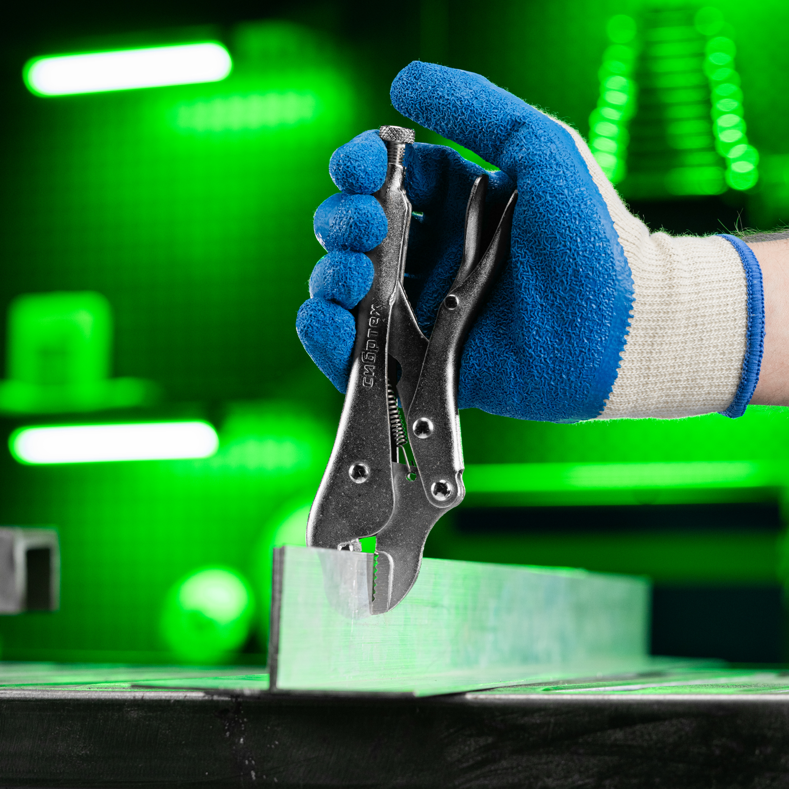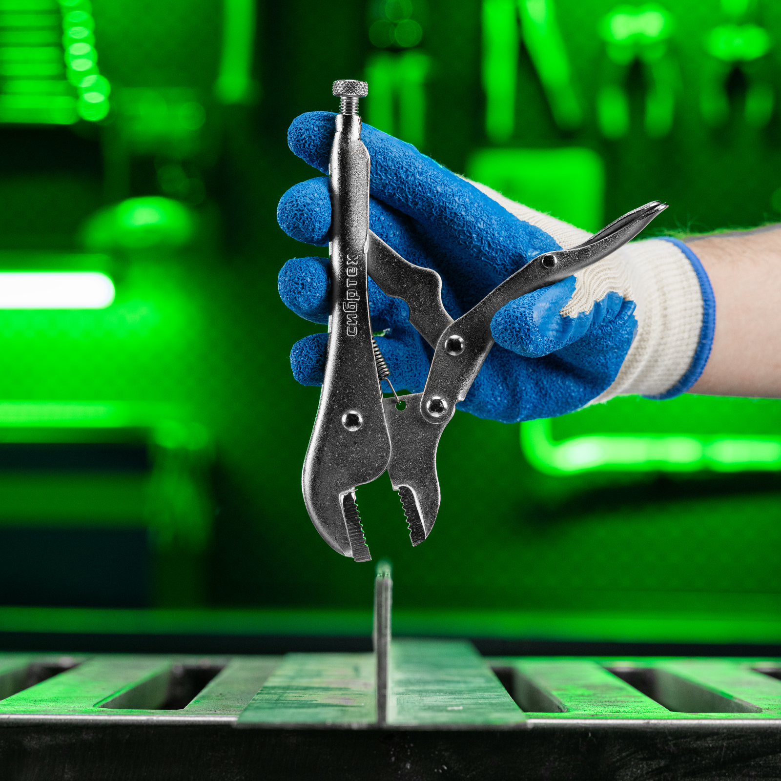 - Удобная работа с деталями разной формы — ширина раствора губок регулируется винтом, ребристые рабочие поверхности обеспечивают надежный захват.