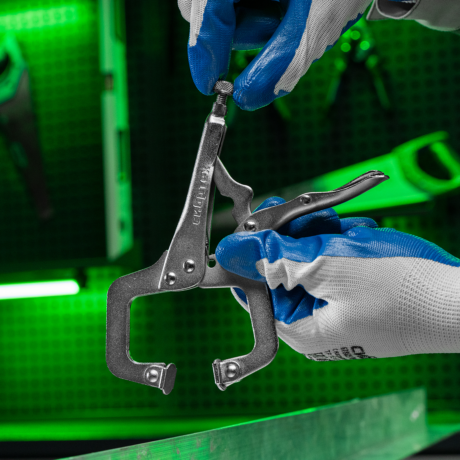 - Удобная работа с крупными деталями — зажим характеризуется увеличенным захватом.