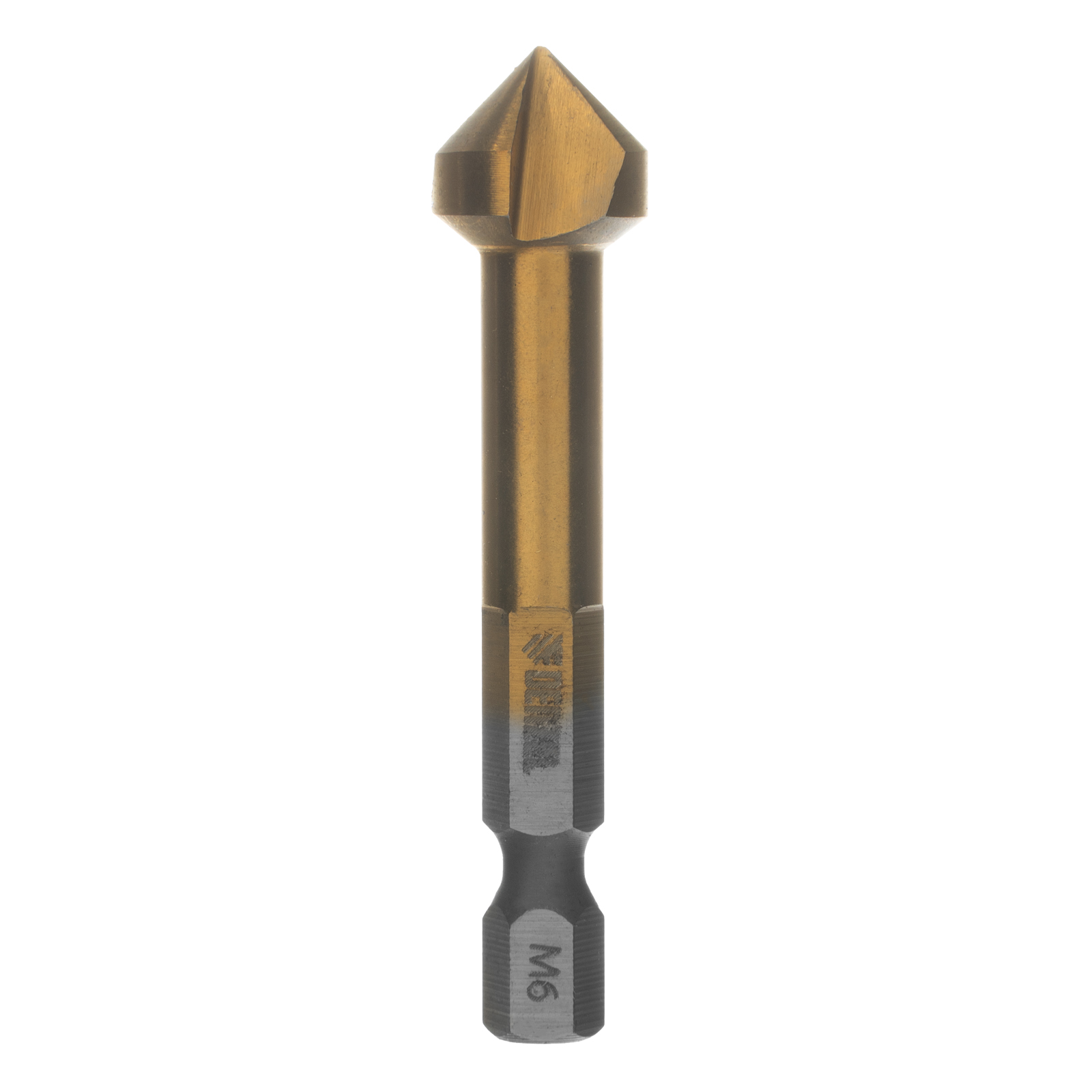 Конусная зенковка Denzel 72307 под болт M6, с 6-гранным хвостовиком, применяется для выполнения конических отверстий и снятия фасок в стали, цветных металлах, древесине и пластике. Устанавливается в патрон дрели или сверлильного станка. Три режущие кромки и идеальные углы заточки 90° обеспечивают точную и быструю обработку отверстий. Оснастка используется во время выполнения слесарных работ.