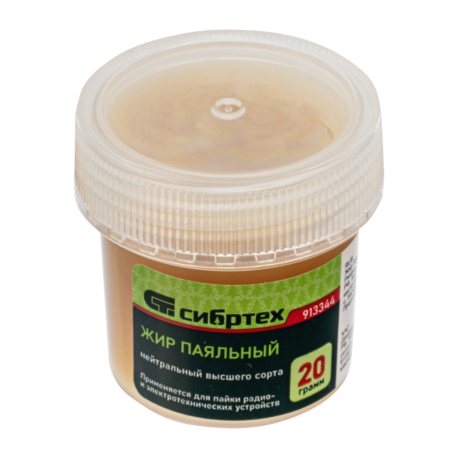 Паяльный жир Сибртех 913344, поставляющийся в банке объемом 20 г, — нейтральный флюс для пайки проводов и компонентов радиоэлектронной аппаратуры. Используется также для лужения жала паяльника. Жир эффективно удаляет окислы в месте пайки и обеспечивает прочность соединения, а после окончания работы легко смывается. Пригодится для ремонта электроники.