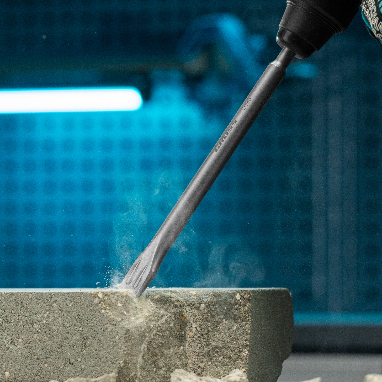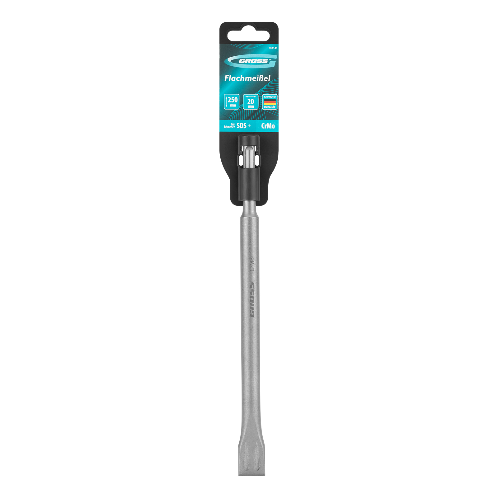 Плоское зубило Gross 703141 размером 20 x 250 мм, изготовлено из стали CrMo и предназначено для установки на перфоратор с патроном под хвостовик SDS-plus. Используется для выполнения долбежных работ. С его помощью можно демонтировать бетонные конструкции, кирпичную кладку, удалить старое покрытие и т.д. Инструмент пригодится на строительной площадке и во время ремонта.