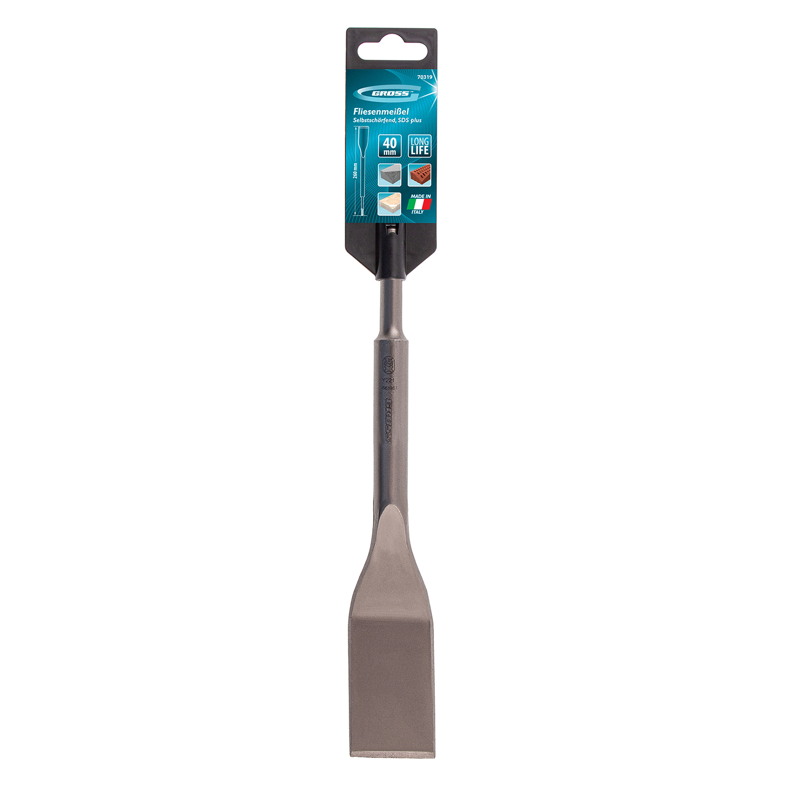 Плоское изогнутое зубило Gross 70319 размером 40 х 260 мм устанавливается на перфоратор с патроном под хвостовик SDS PLUS. Рабочая часть изогнутой формы позволяет эффективно демонтировать старую отделку, создавать углубления в бетоне, кирпиче и камне. Зубило используется как частными мастерами, так и профессионалами для проведения ремонтных и строительных работ.