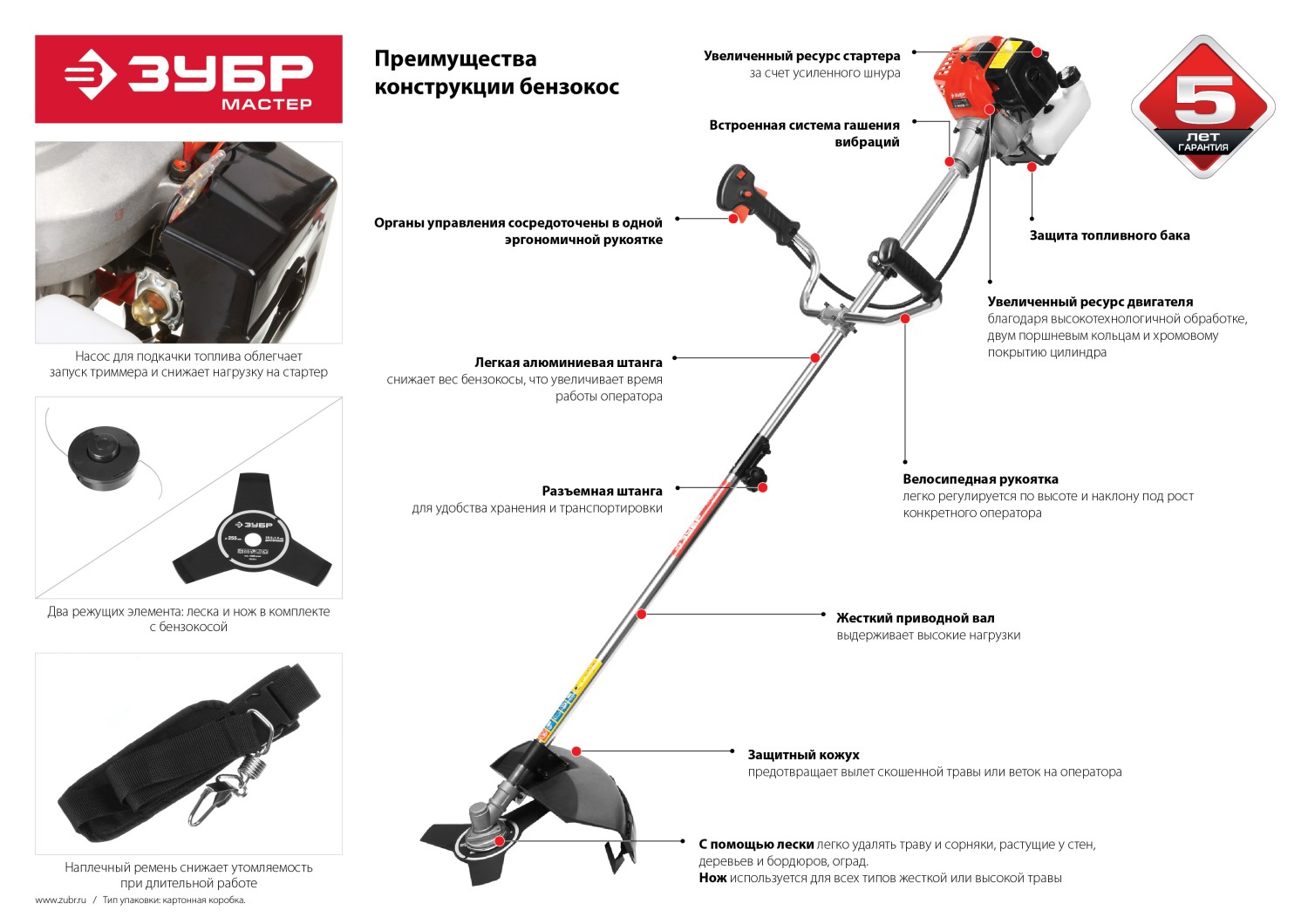 - Плечевой ремень и оптимальная развесовка облегчают эксплуатацию