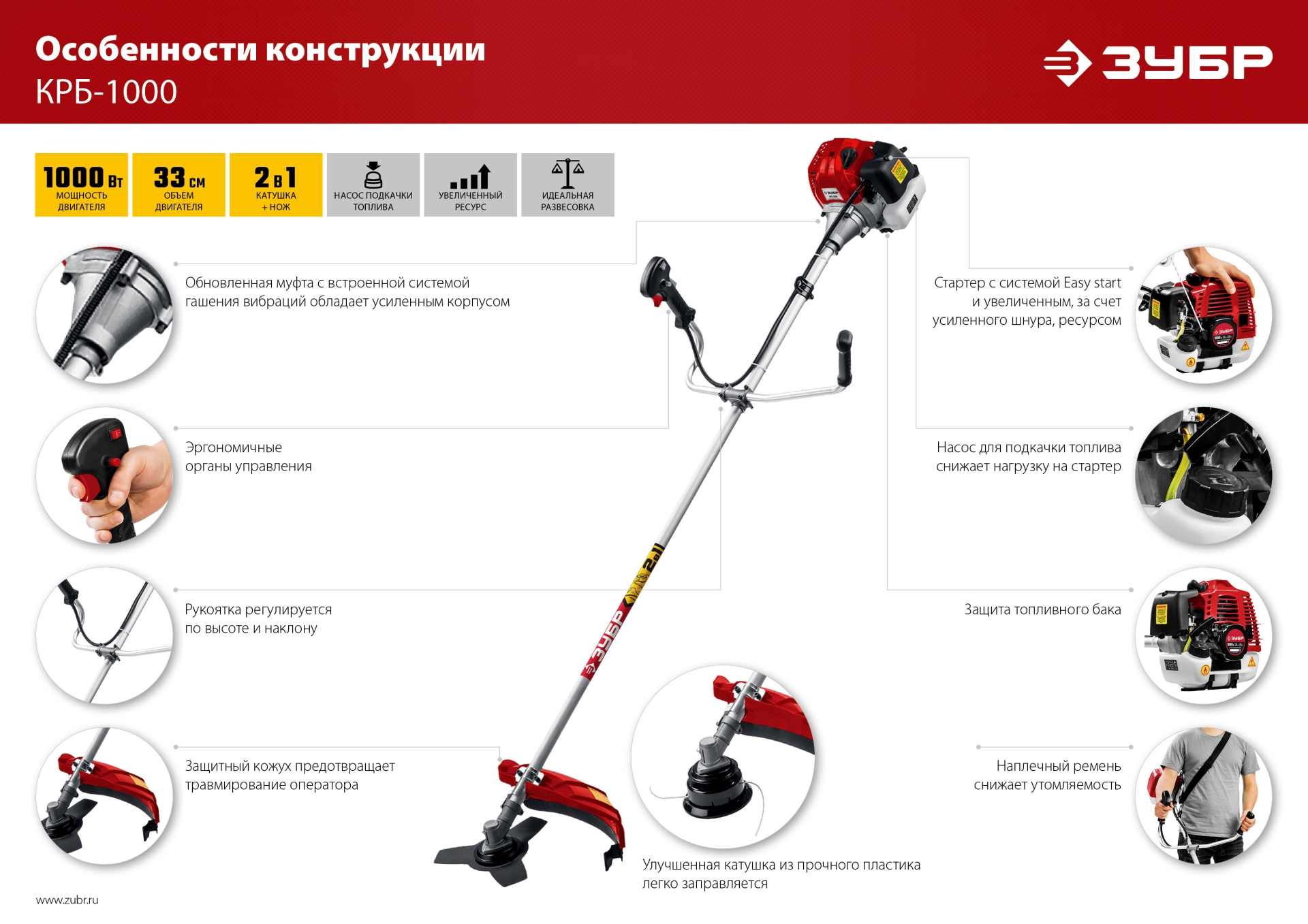 - Плечевой ремень и оптимальная развесовка облегчают эксплуатацию