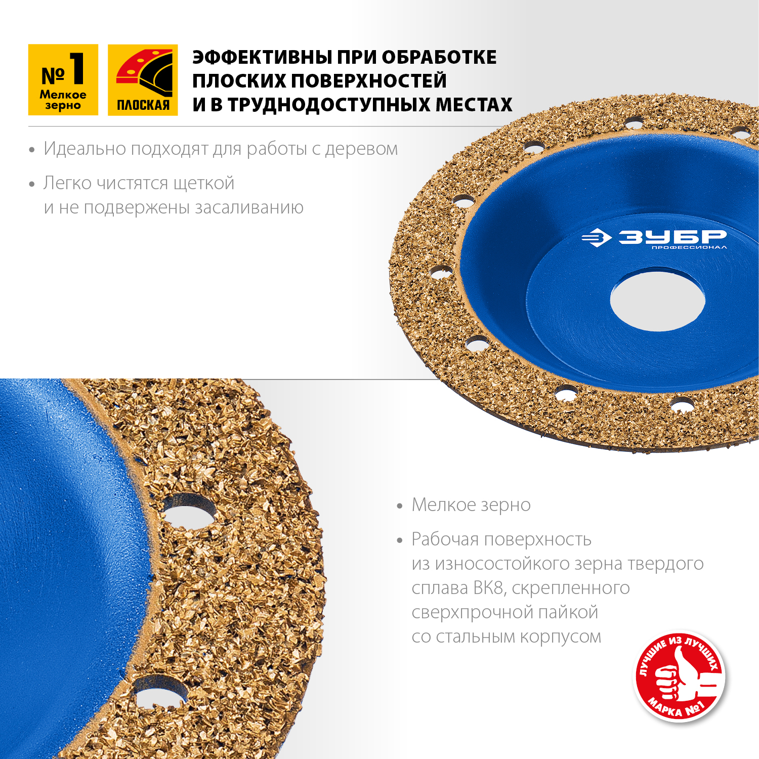 ЗУБР №1 мелкое зерно, 125 мм, ВК8, плоская обдирочно-шлифовальная чашка, Профессионал (33430-1)