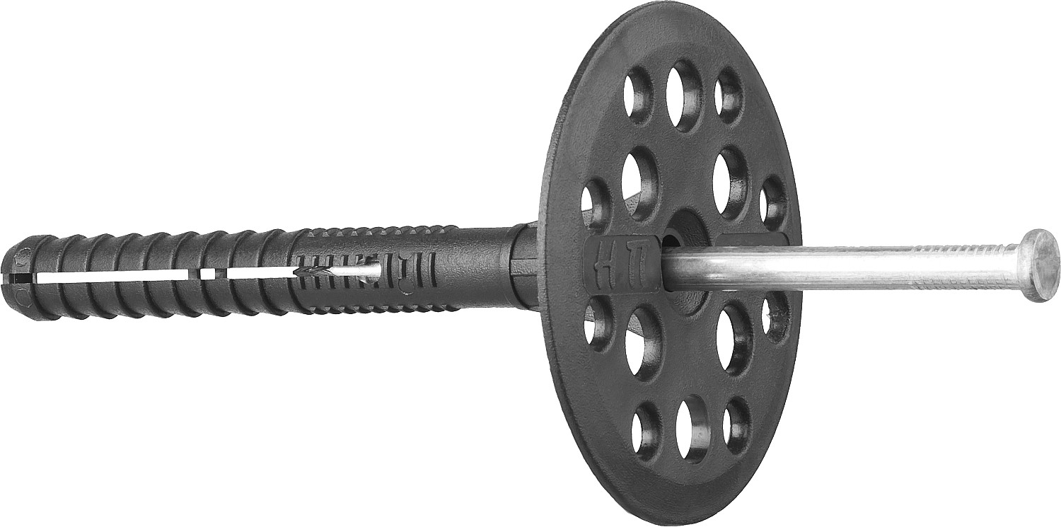 Дюбели для теплоизоляции изготовлены из высококачественных материалов. Большой диаметр головки дюбеля позволяет крепить как твердые, так и мягкие теплоизоляционные материалы (минеральную вату, стекловату, полистирол, пенопласт и др.), препятствуя их разрыву или повреждению в месте крепления.