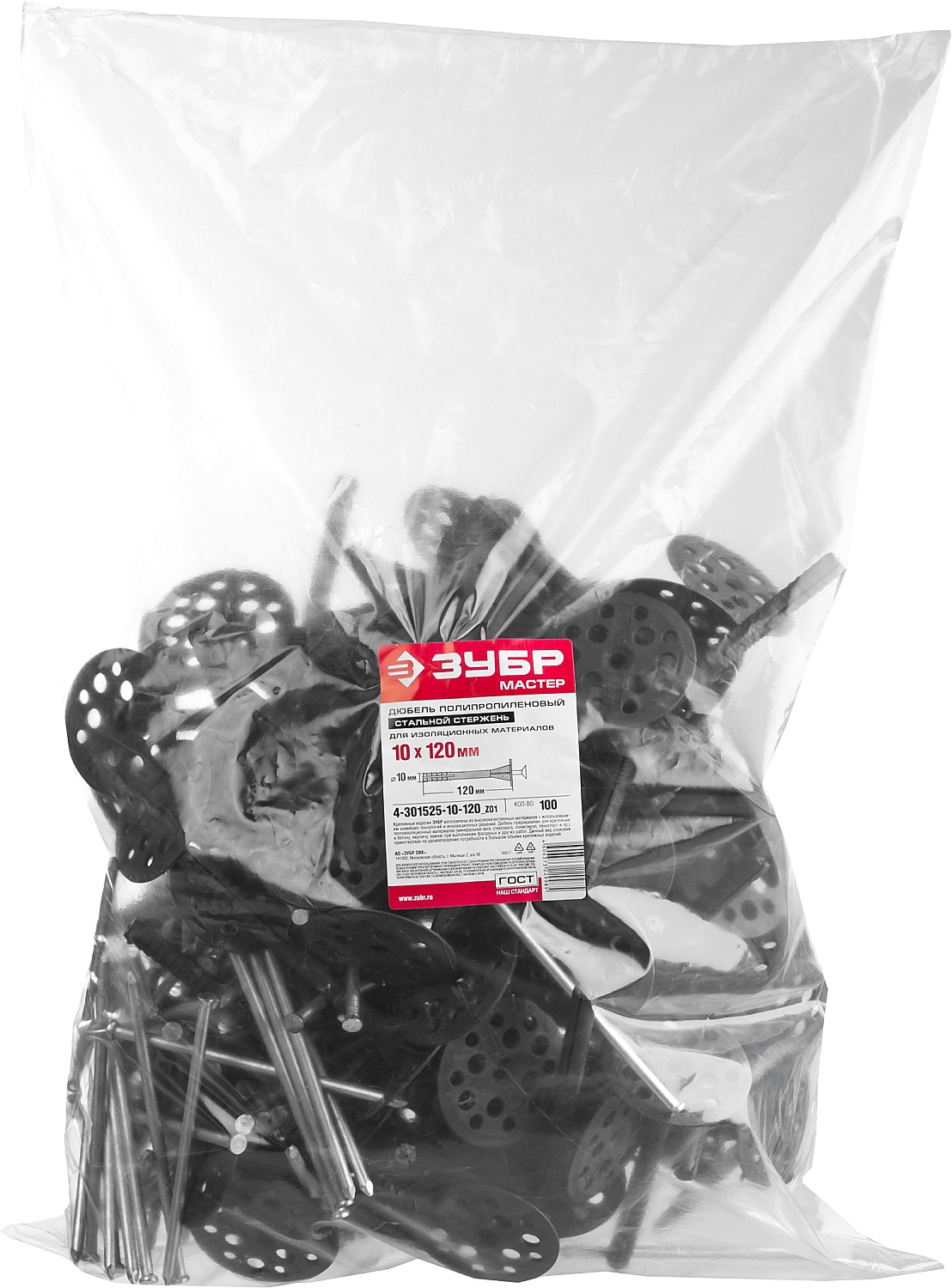 ЗУБР 10 х 120 мм, металлический стержень, 100 шт, дюбель для изоляционных материалов (4-301525-10-120)