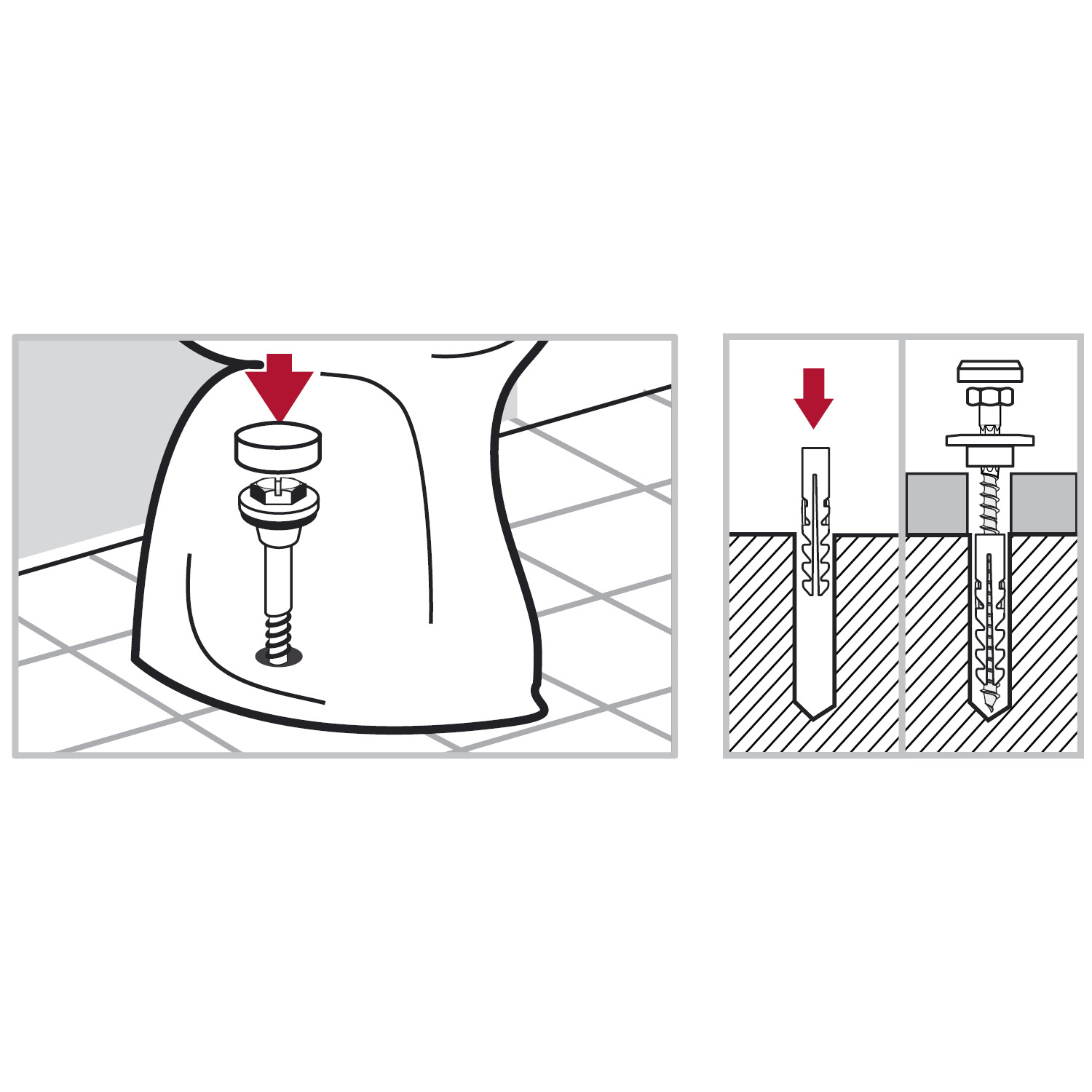 Крепление унитазов к бетонному или кирпичному основанию. Диаметр предварительного сверления: 10 мм.