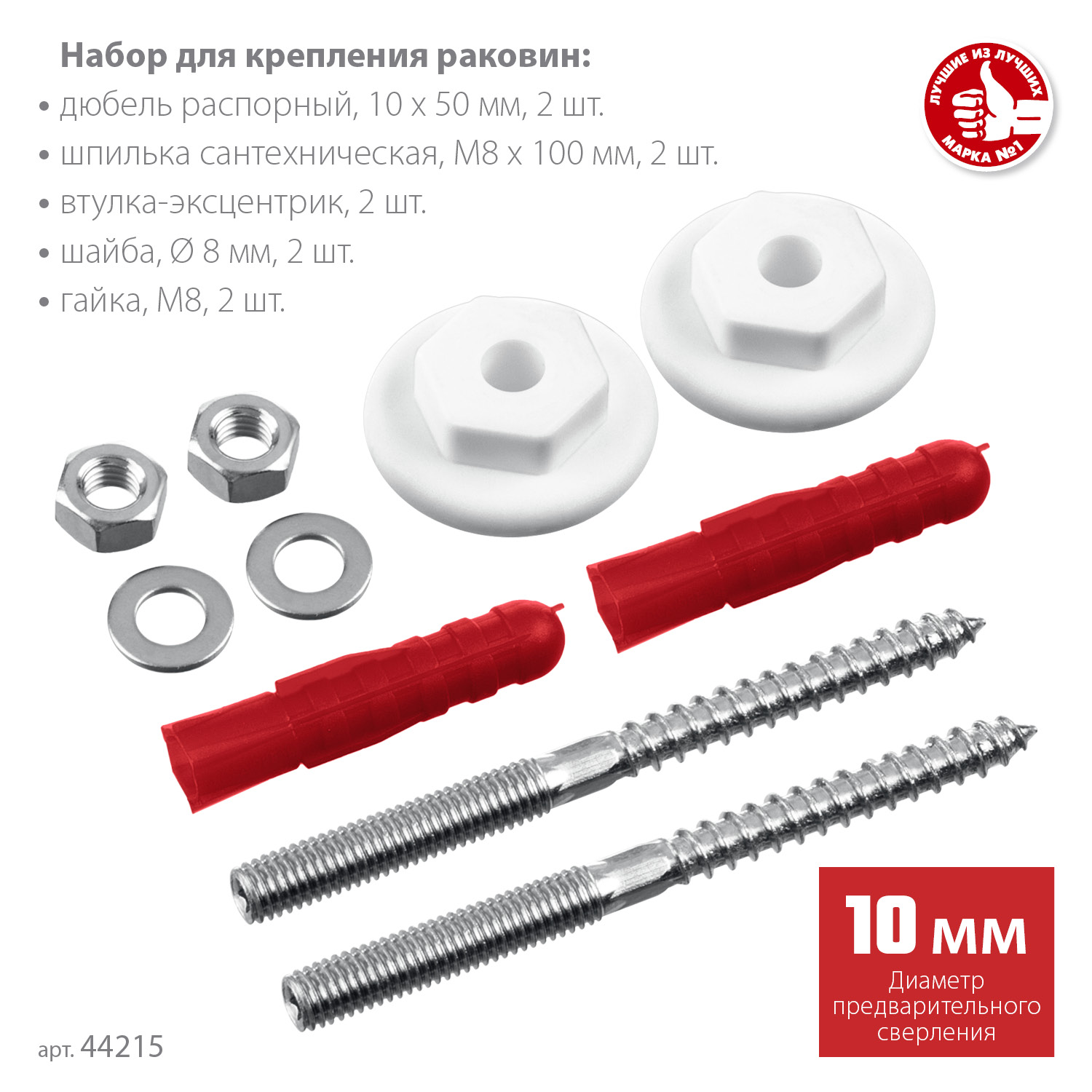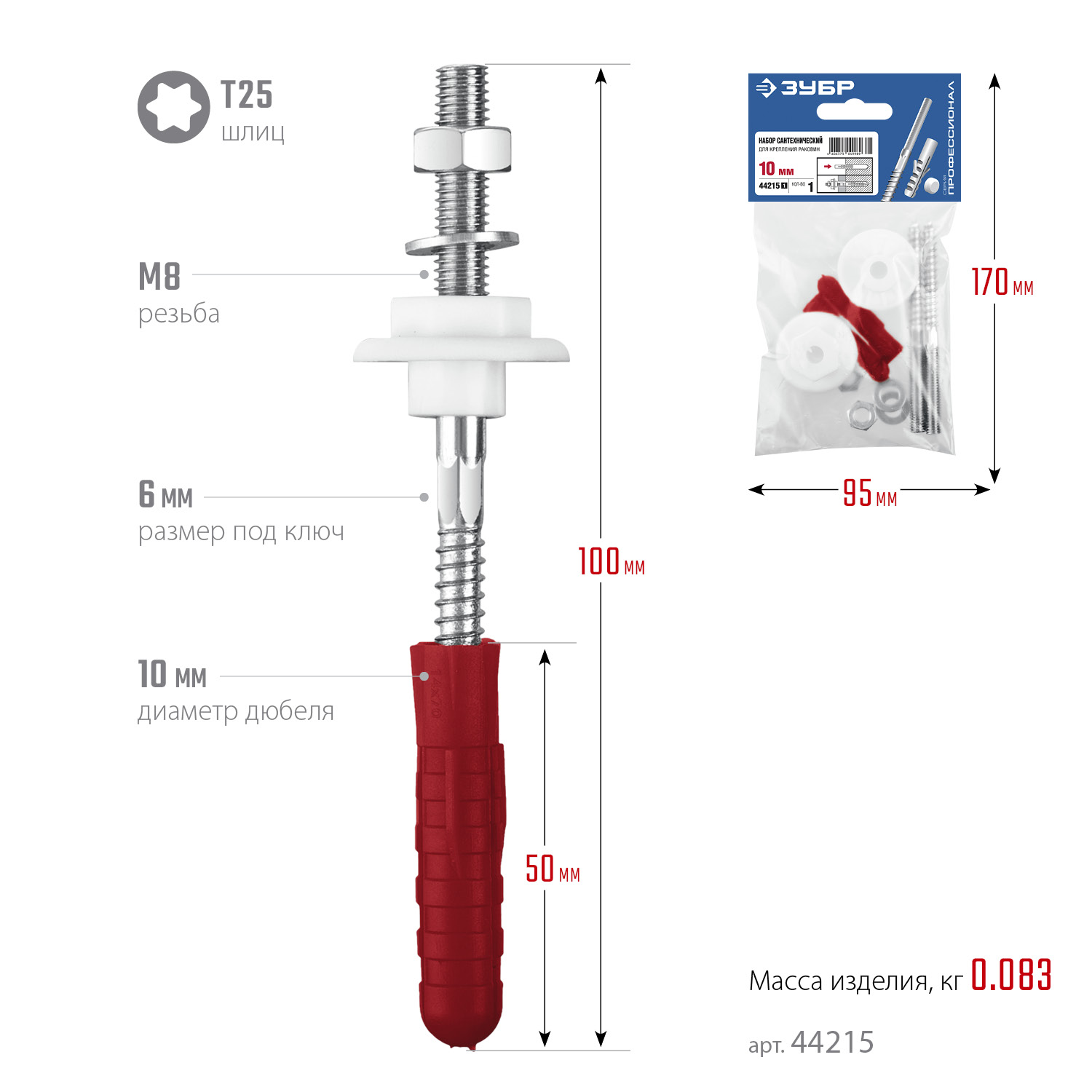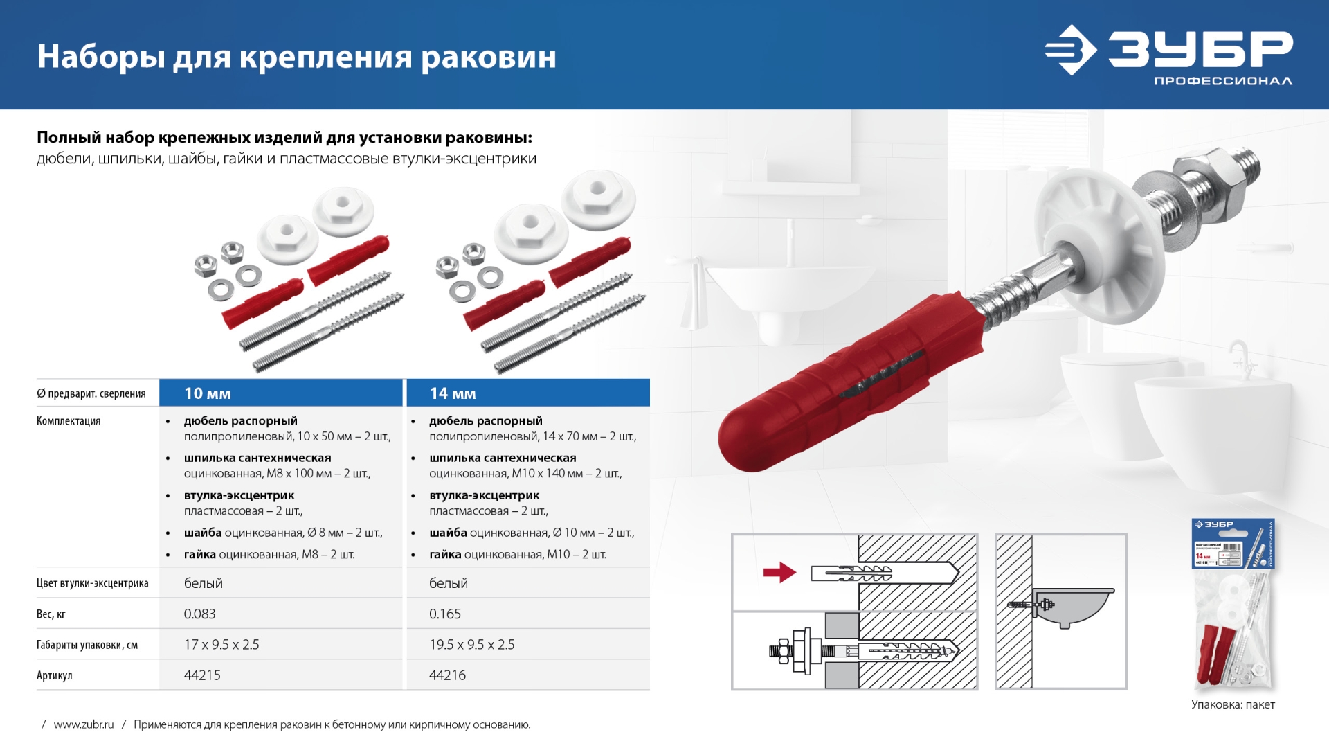 ЗУБР 10 мм, набор для крепления раковин, Профессионал (44215)