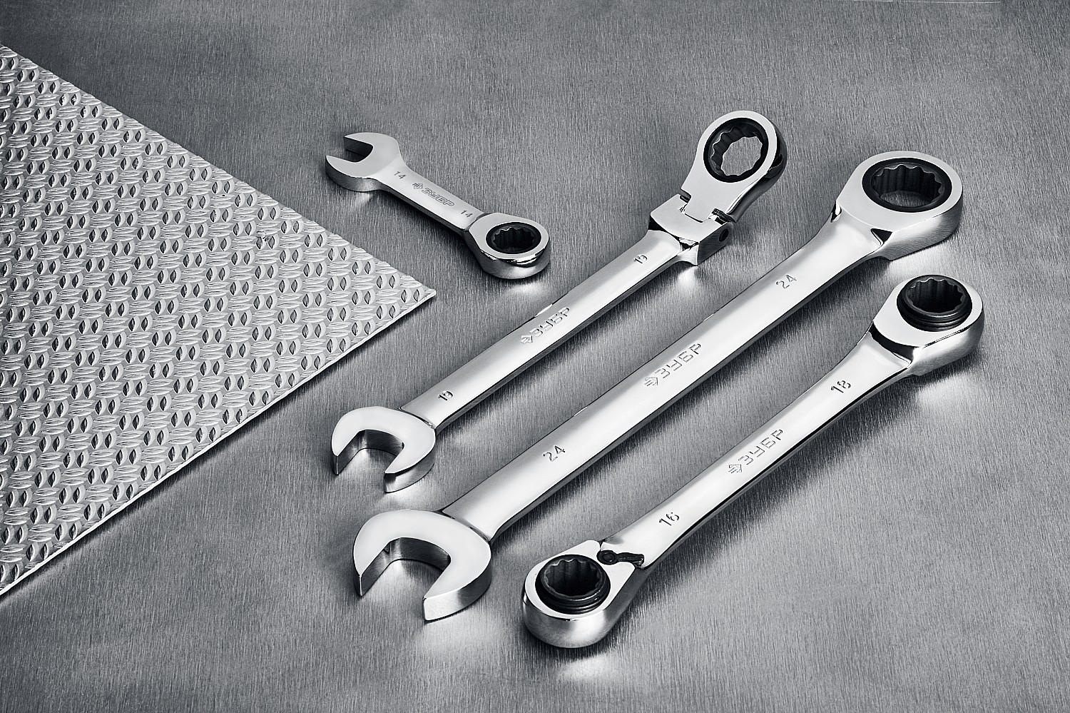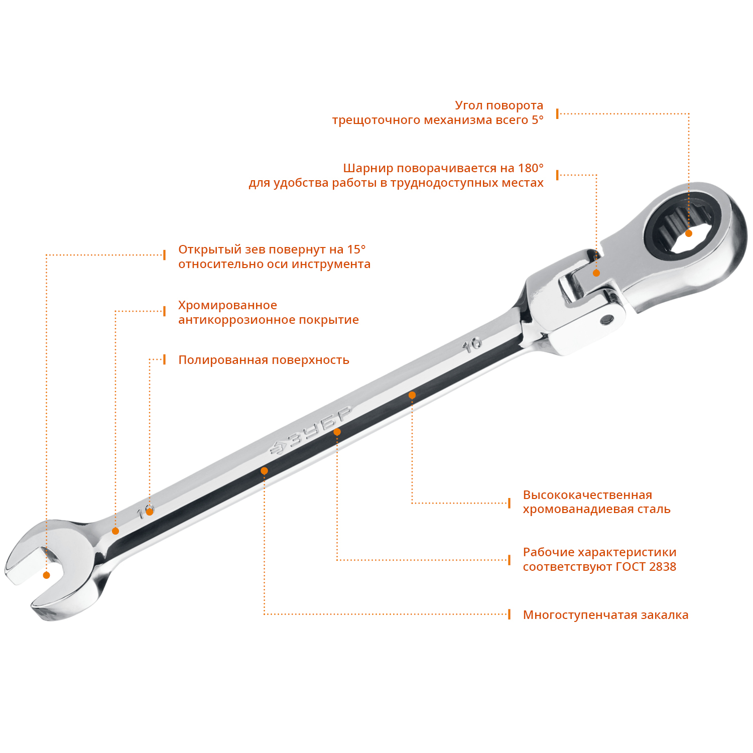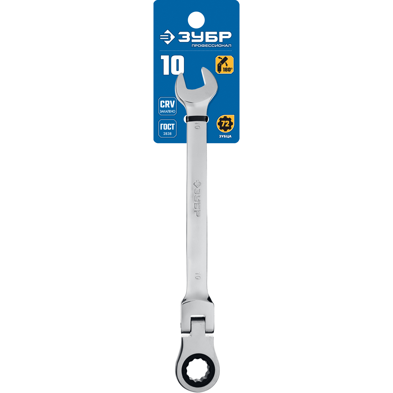 ЗУБР 10 мм, шарнирный трещоточный гаечный ключ, Профессионал (27101-10)