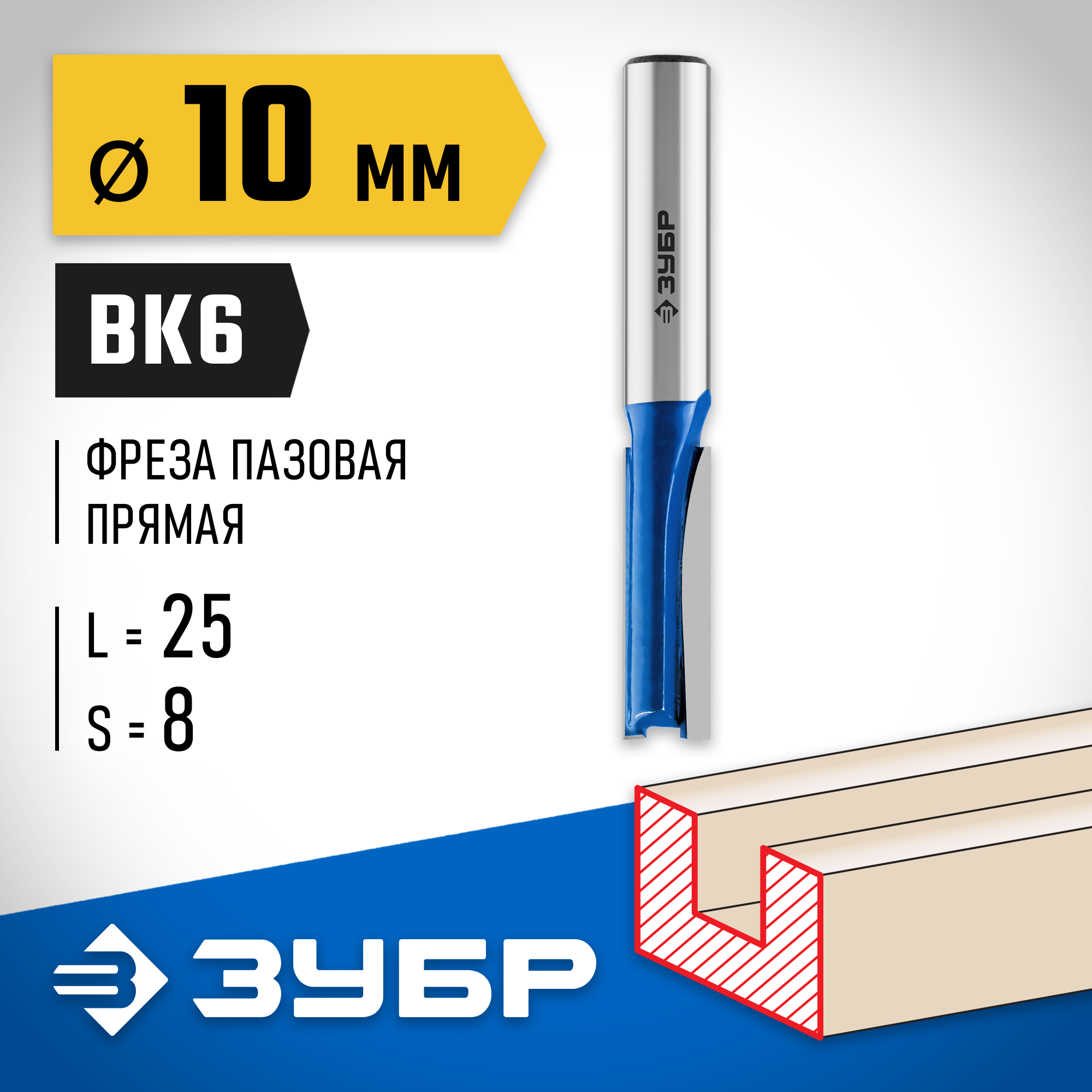 ЗУБР 10 x 25 мм, хвостовик 8 мм, фреза пазовая прямая, Профессионал (28753-10-25)
