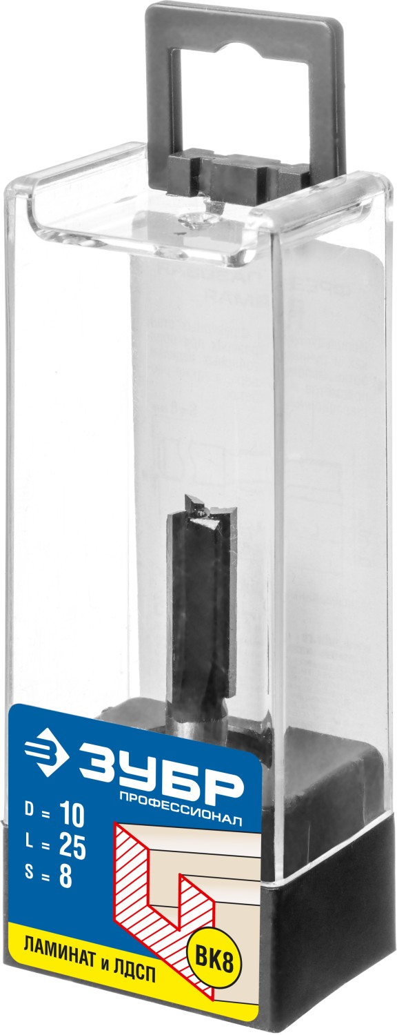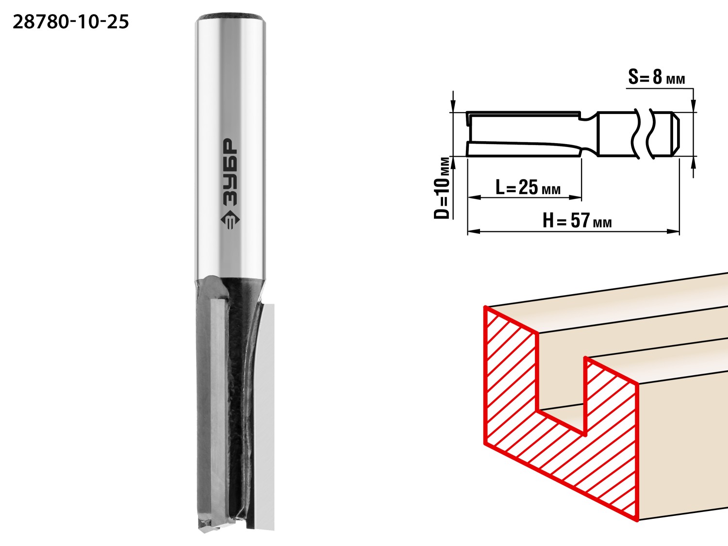 ЗУБР 10 x 25 мм, хвостовик 8 мм, фреза пазовая прямая, Профессионал (28780-10-25)