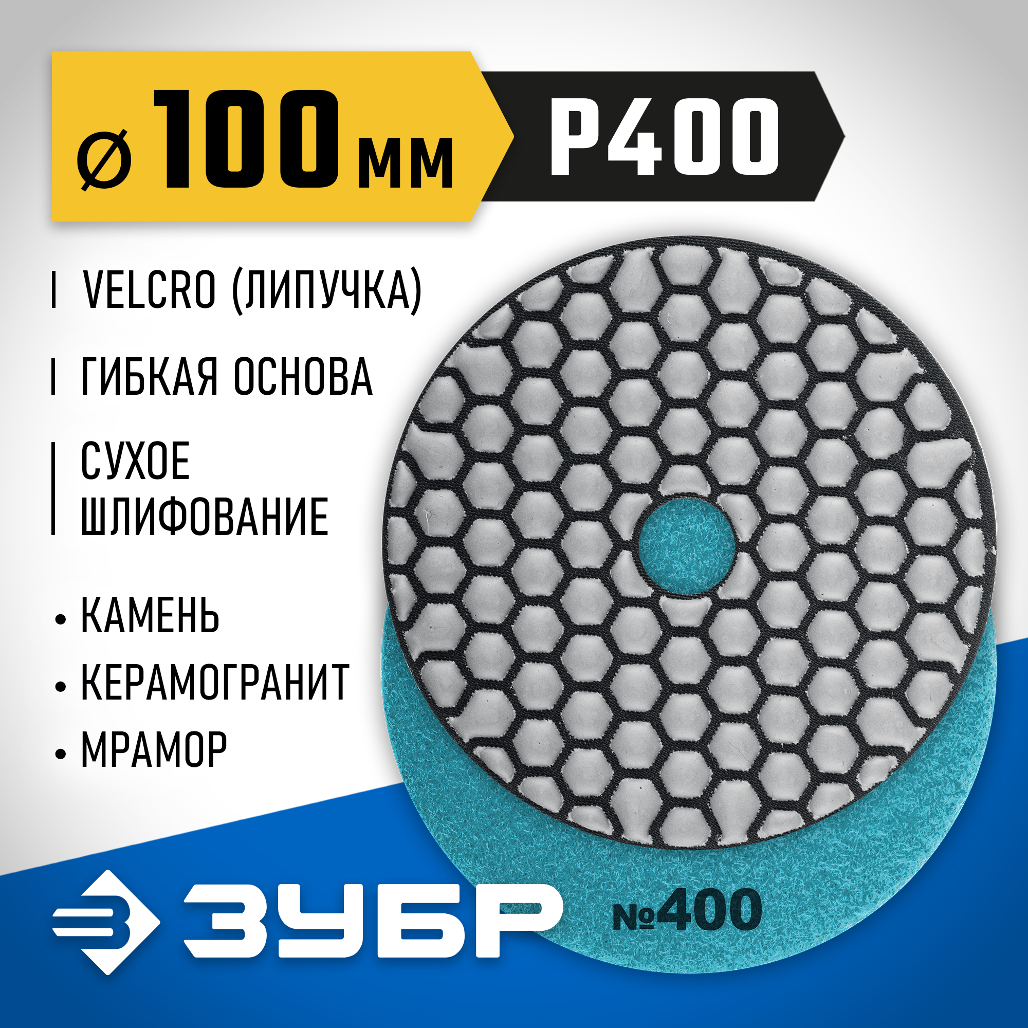 ЗУБР 100 мм, №400, сухое шлифование, алмазный гибкий шлифовальный круг АГШК, Профессионал (29868-400)