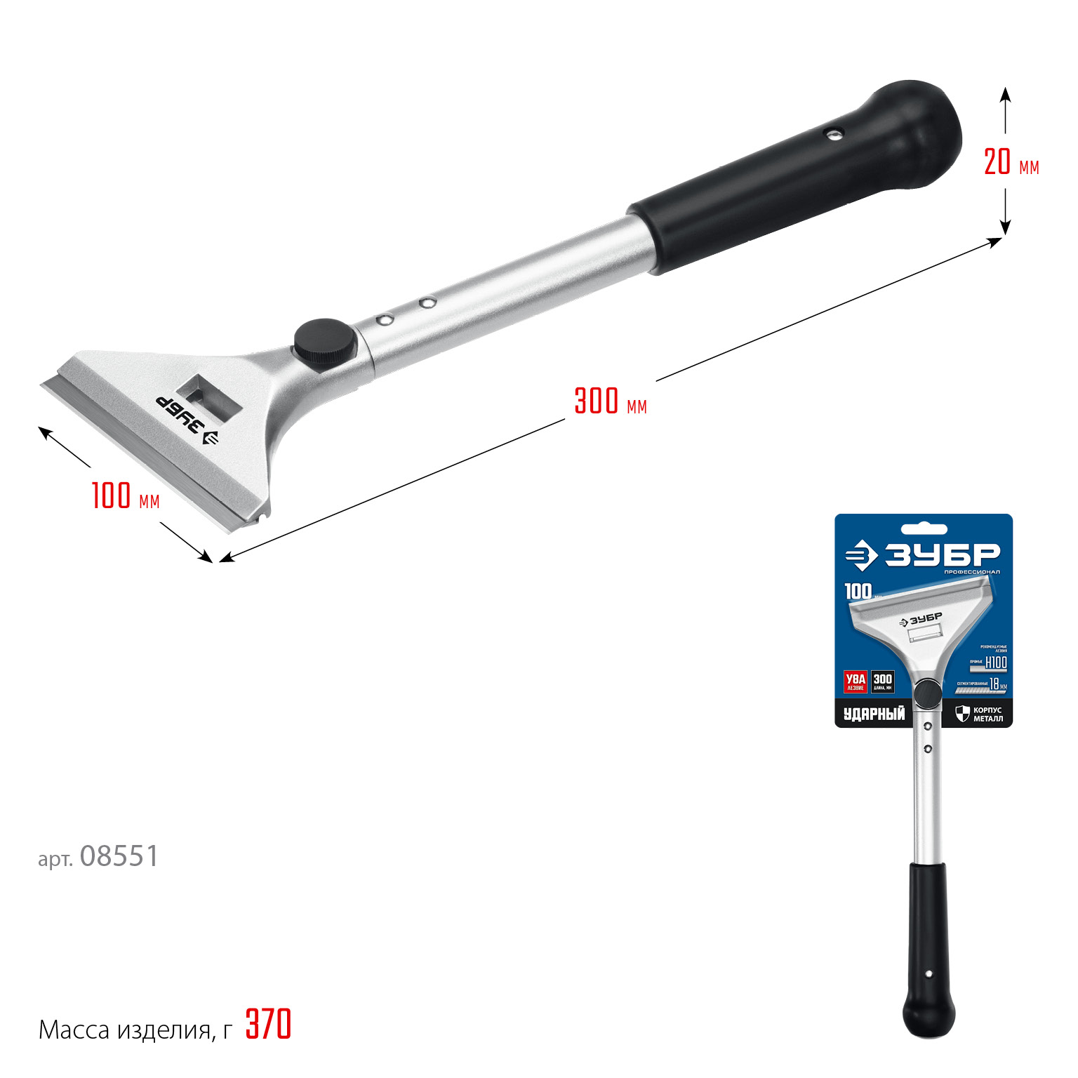 Профессиональный ударный скребок с особопрочным затыльником и металлической рукояткой для зачистки поверхностей от загрязнений