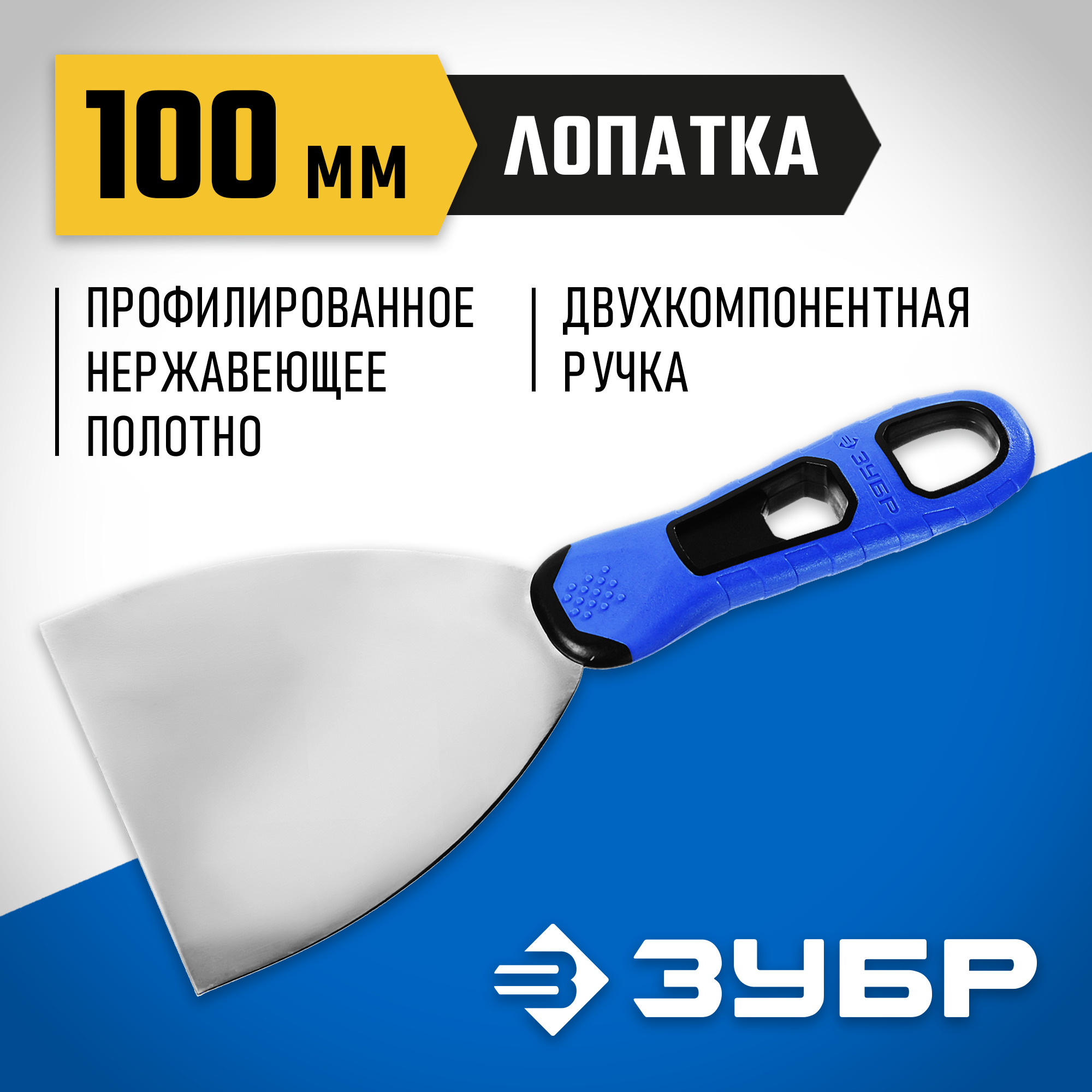 ЗУБР 100 мм, х-образное профилированное полотно, облегченная двухкомпонентная ручка, нержавеющий шпатель, Профессионал (10049-10)