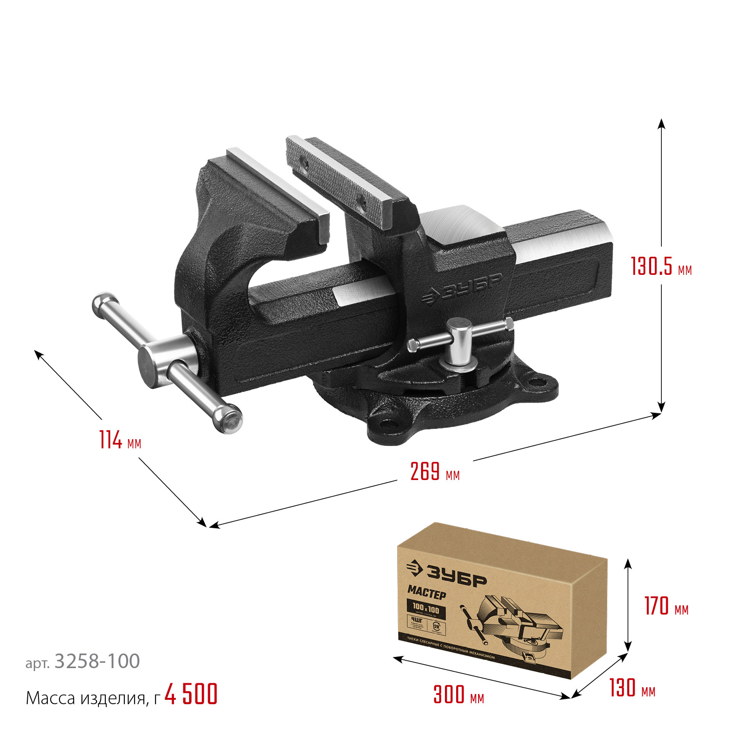 ЗУБР 100 мм, слесарные тиски (3258-100)