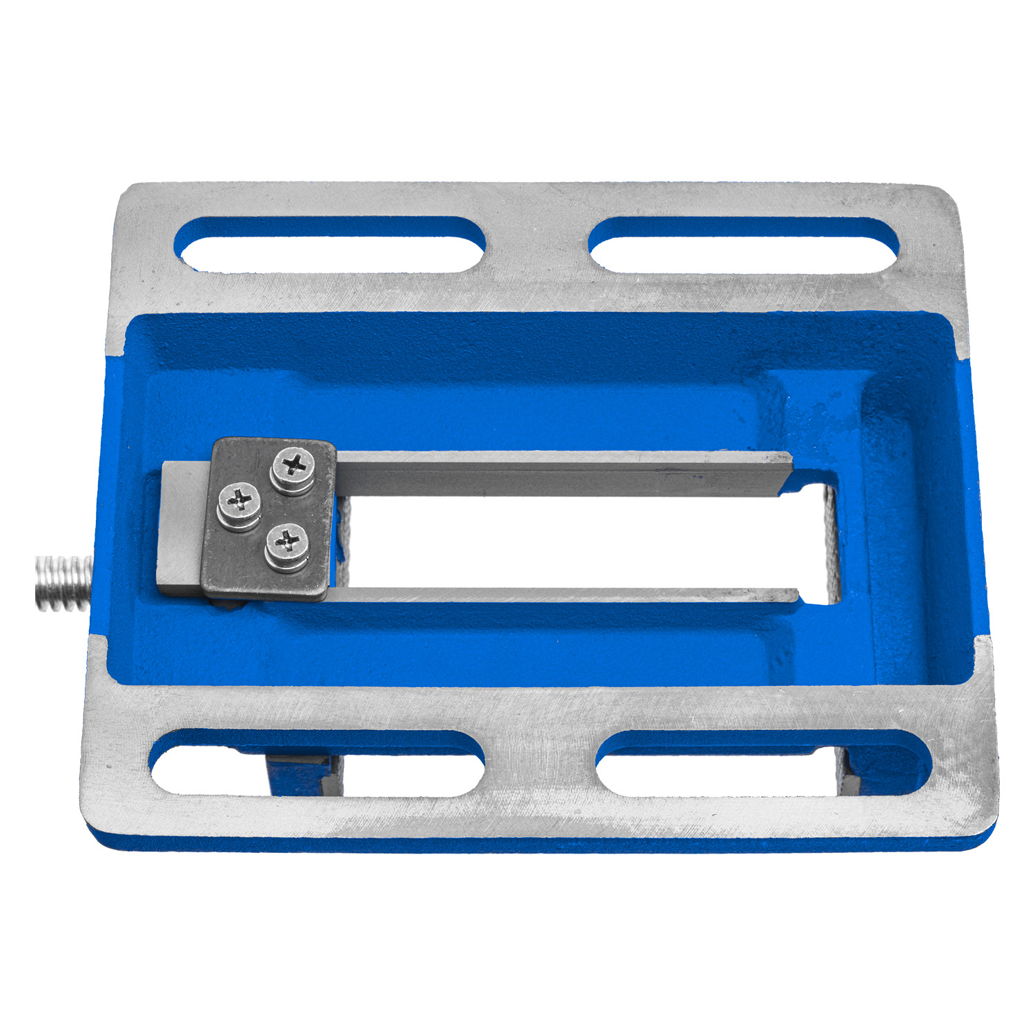 - Установка тисков на столе осуществляется с помощью винтов и гаек, для чего в основании предусмотрены отверстия.