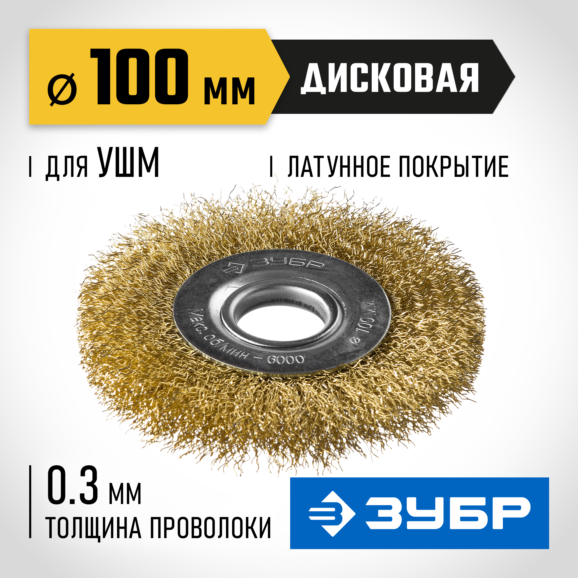 ЗУБР 100 мм, витая стальная латунированная проволока 0.3 мм, щетка дисковая для УШМ, Профессионал (35187-100)