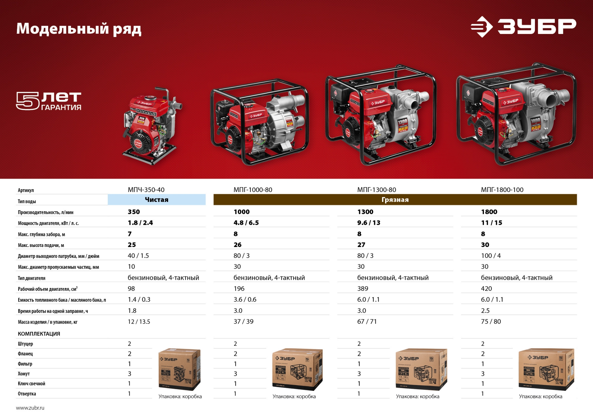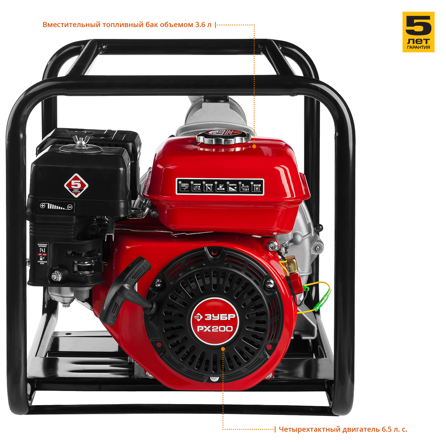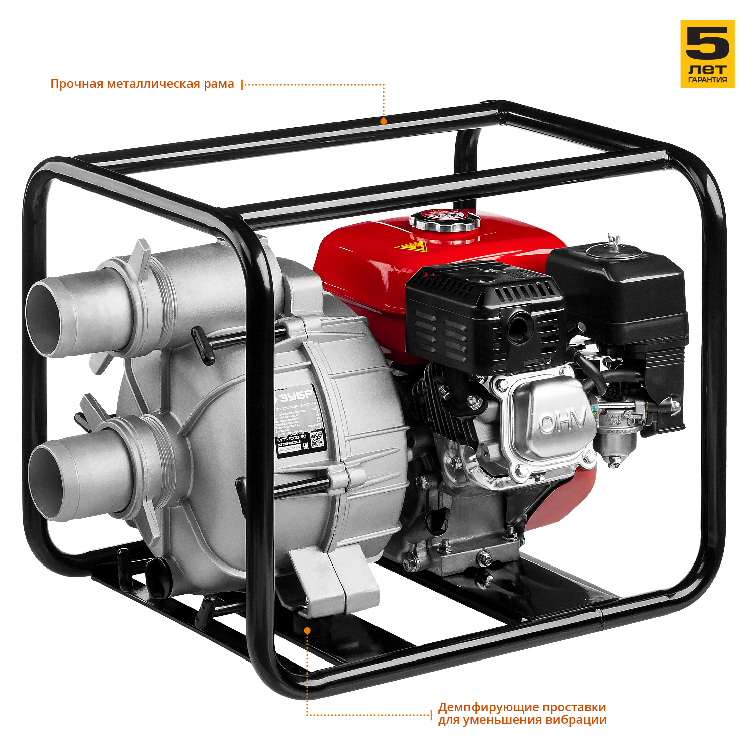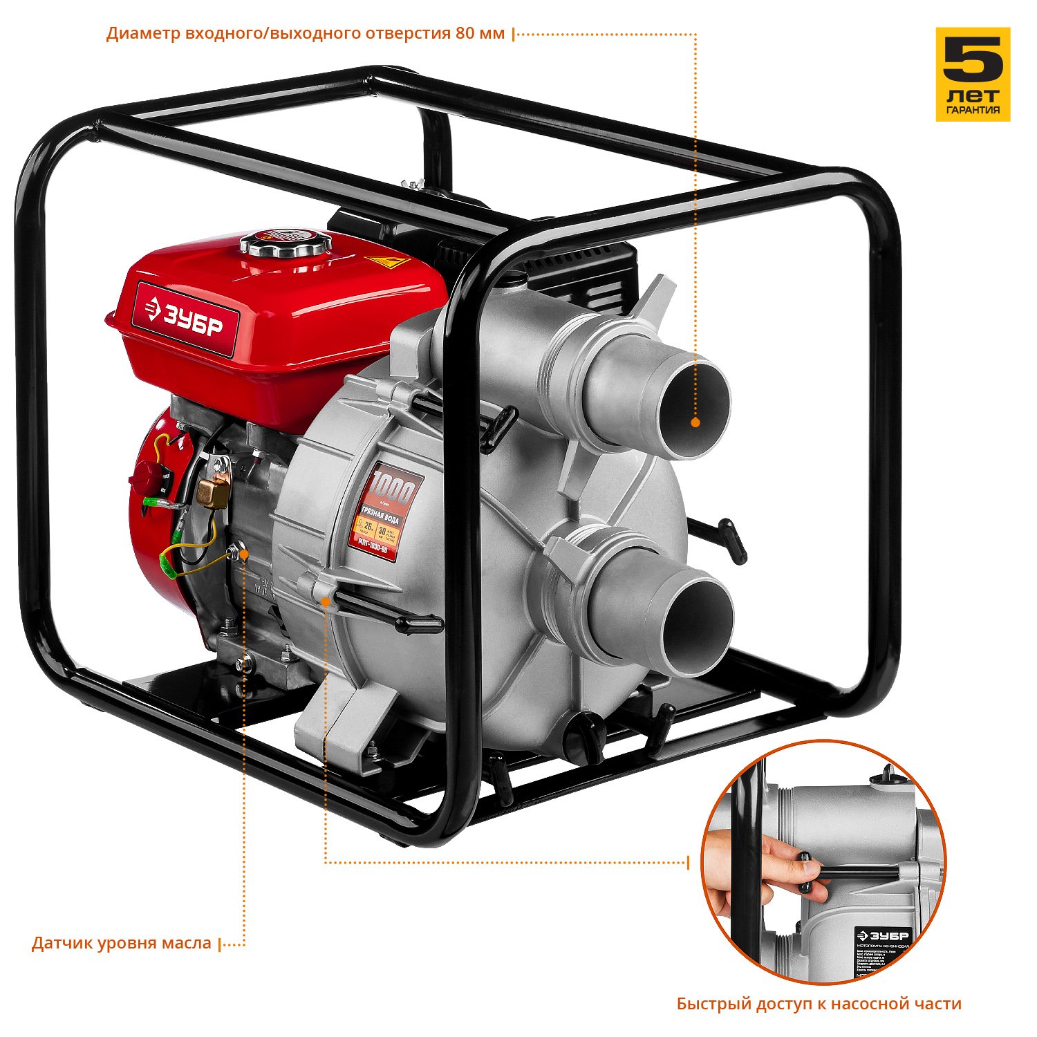 - Простой доступ к насосной части благодаря оригинальному крепежу значительно упрощает обслуживание мотопомпы