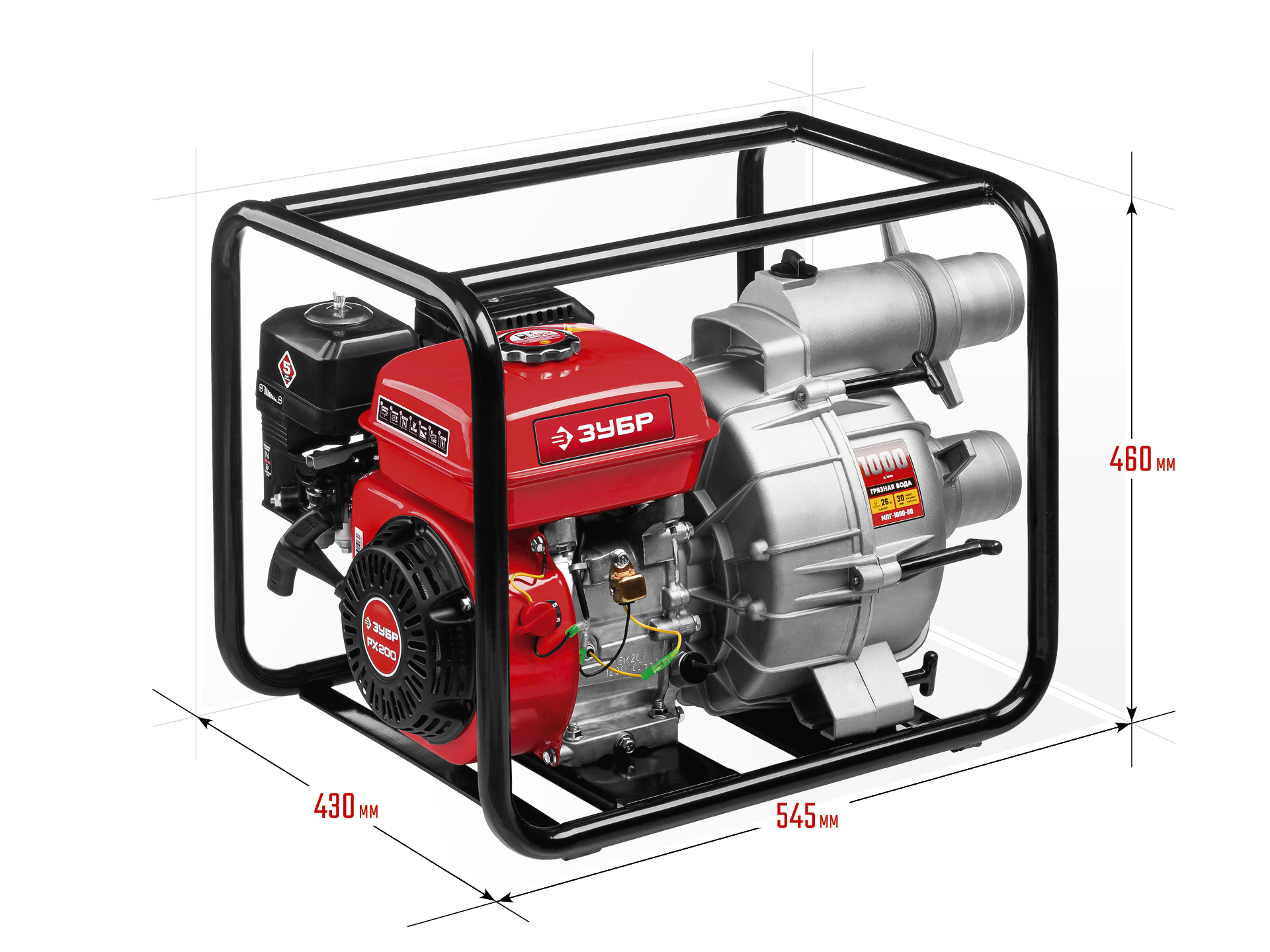 Мощная мотопомпа способна справиться с самой тяжелой работой, уверенно перекачивает большие объемы сильнозагрязненной воды