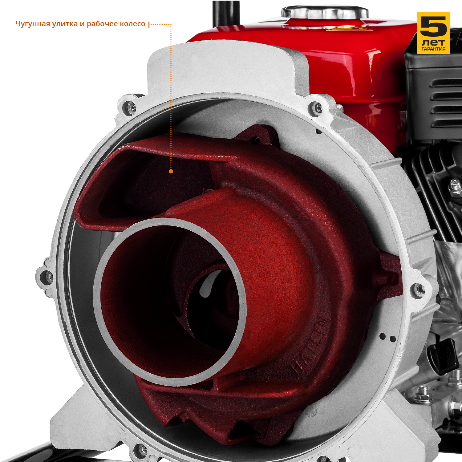 - Высокая надежность рабочего колеса и улиты насоса, изготовленных из чугуна с добавлением сфероидального графита
