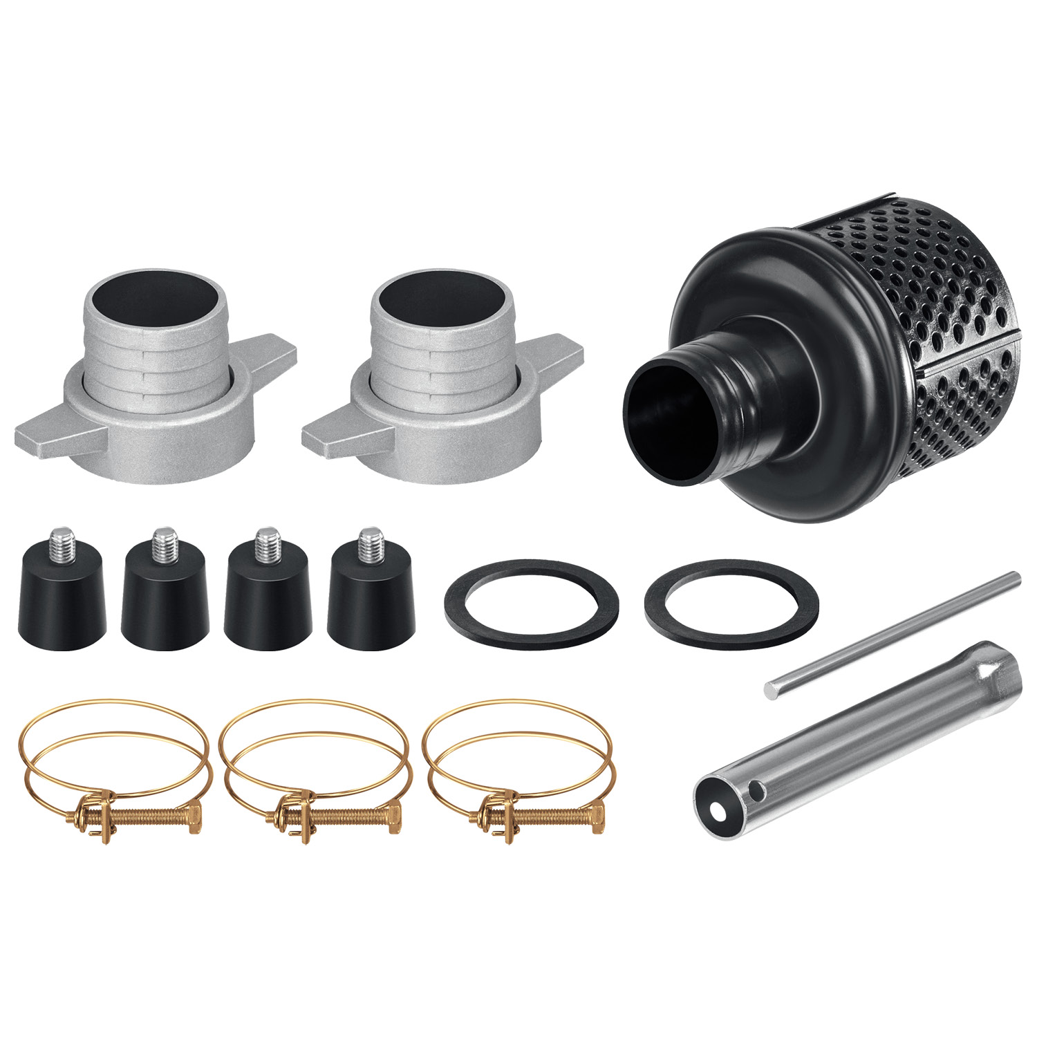 - Металлические патрубки для присоединения шлангов входят в комплект