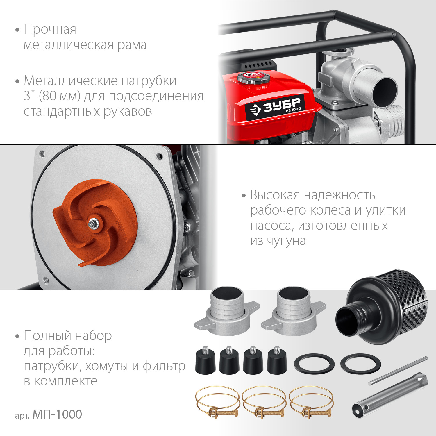 - Высокая надежность рабочего колеса и улиты насоса, изготовленных из чугуна с добавлением сфероидального графита