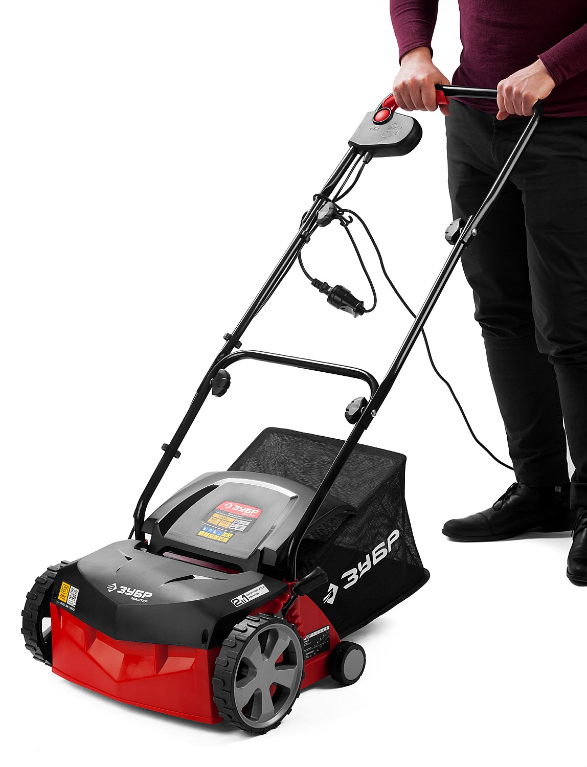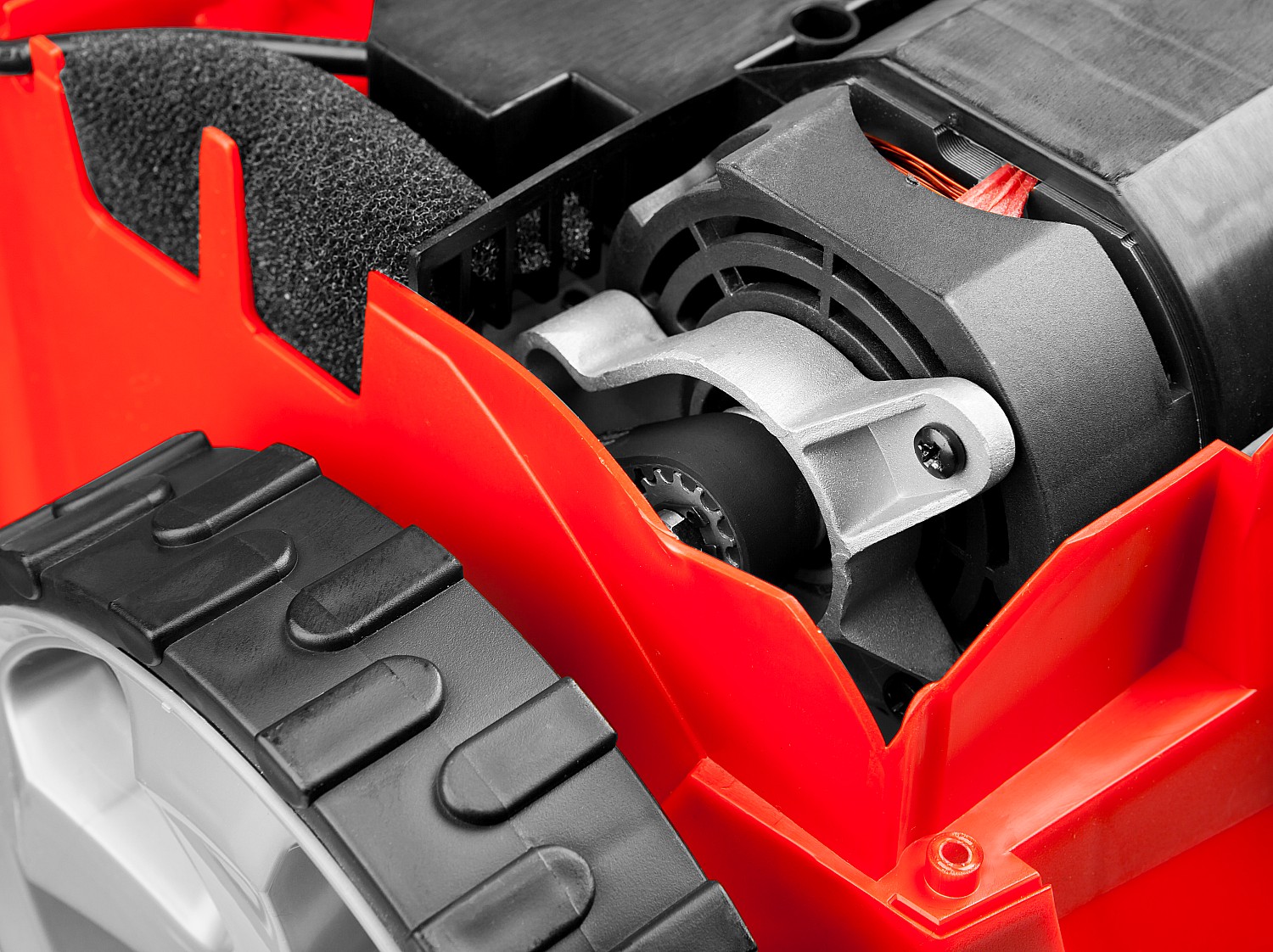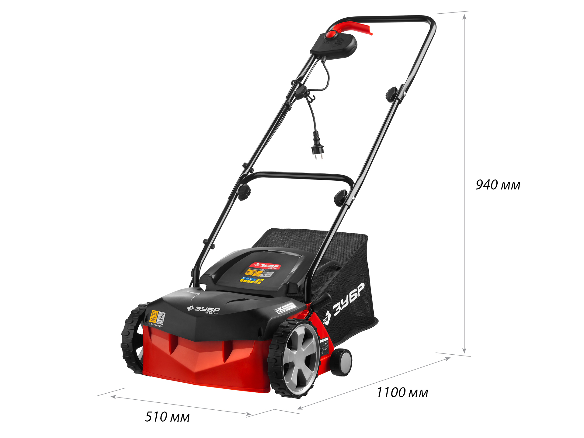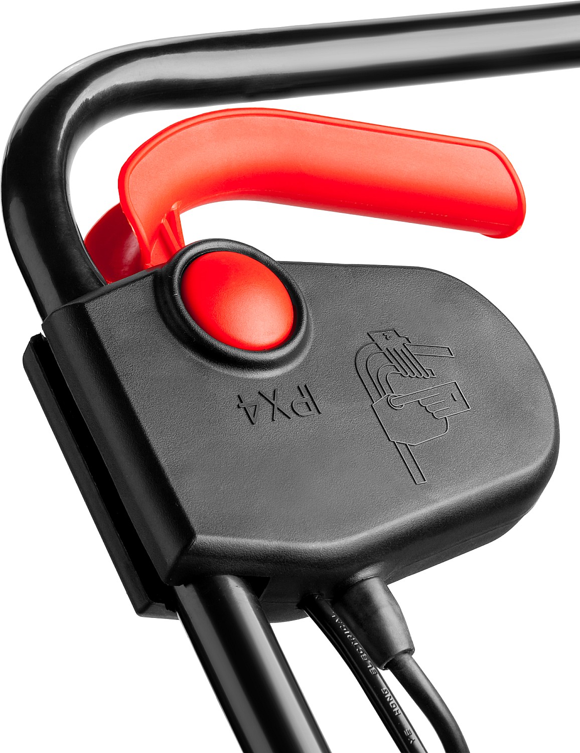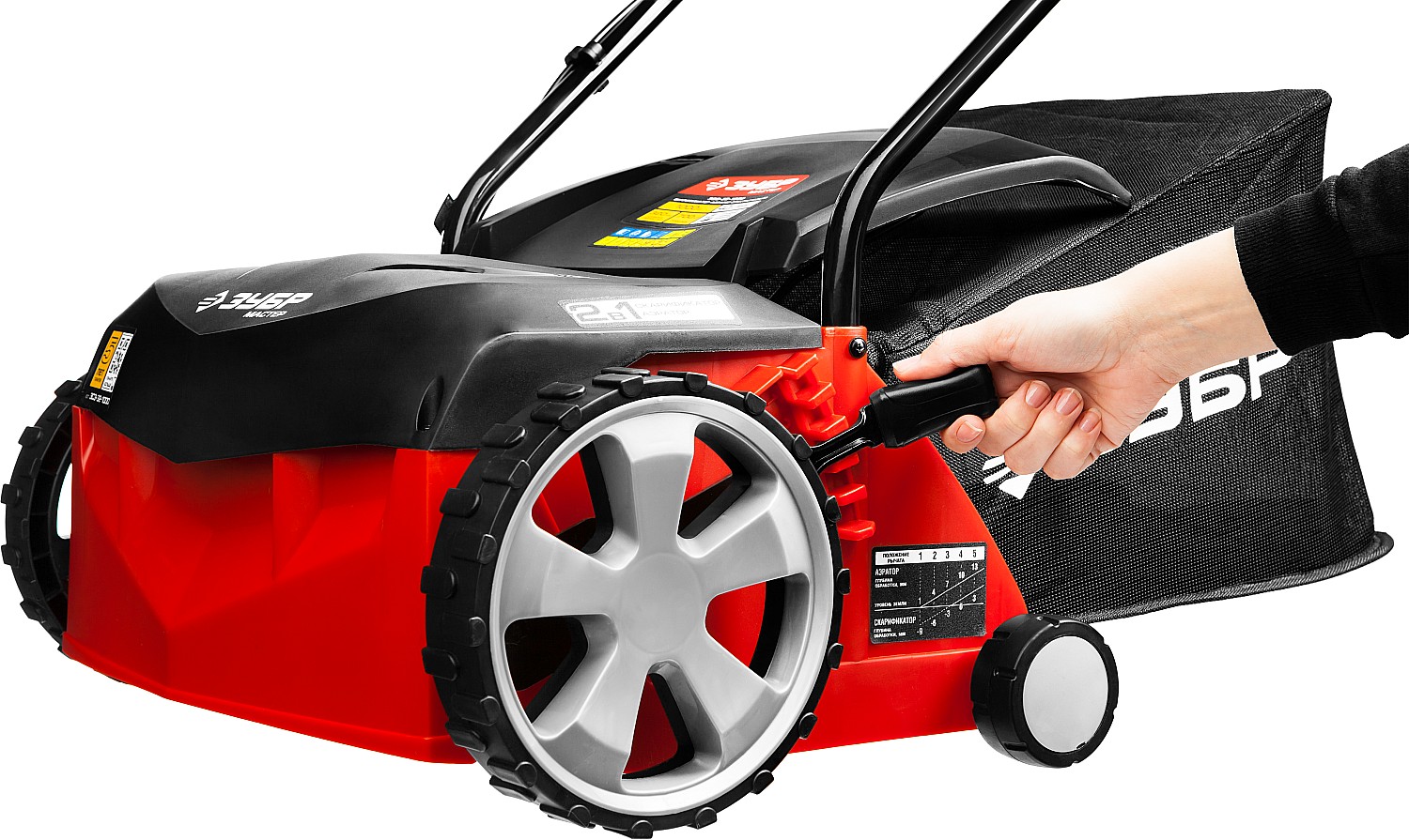- Облегченные колеса большого диаметра и эргономичная рукоятка облегчают перемещение изделия по газону