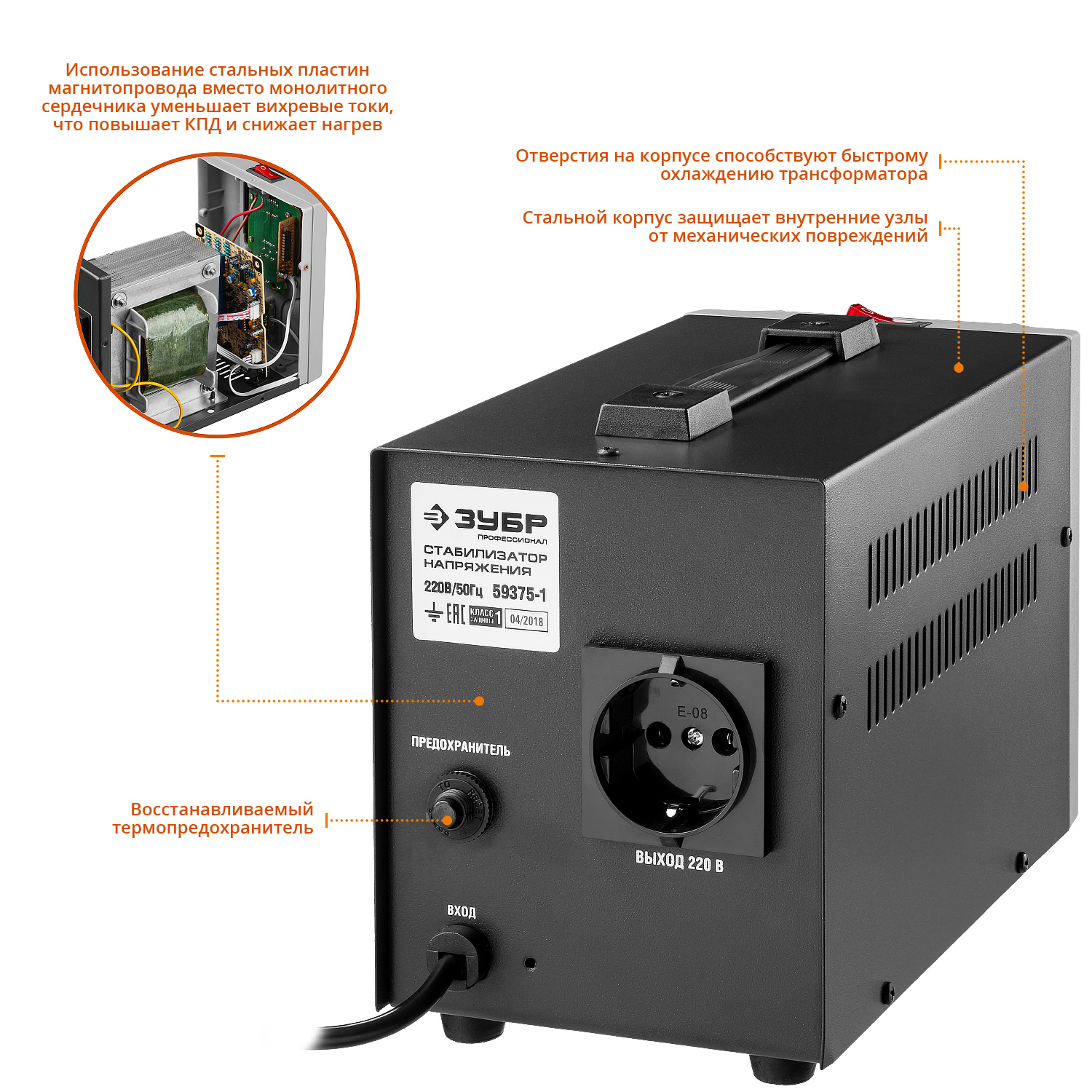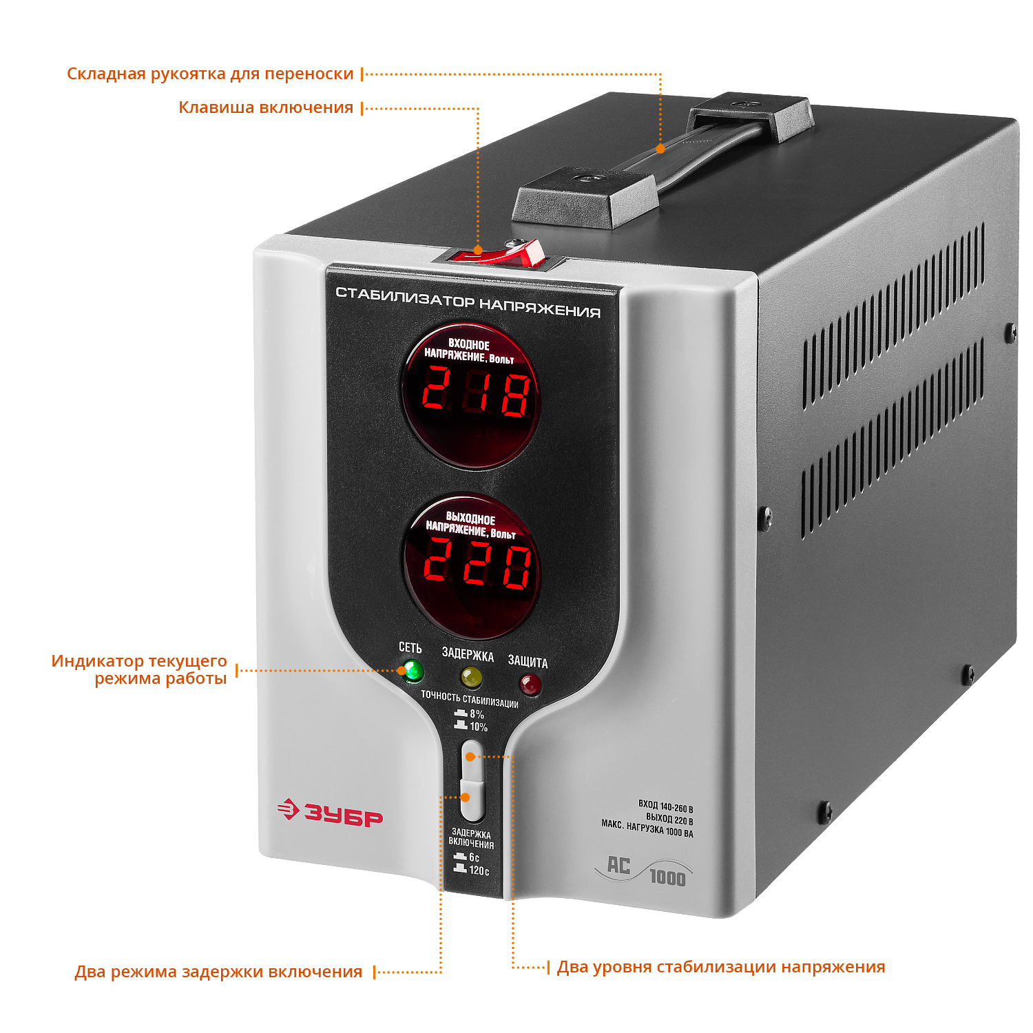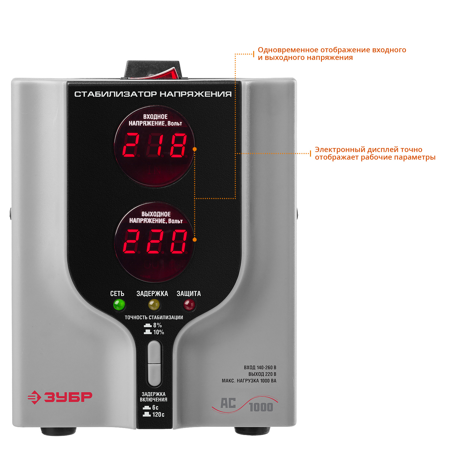Стабилизатор напряжения ЗУБР предназначен для точного и быстрого выравнивания сетевого напряжения для защиты бытовой техники и оборудования. Устройство обеспечивает эффективную защиту электроприборов от нестабильного по значению напряжения в сети. Релейный тип стабилизации является одним из наиболее надежных. Светодиодная индикация и цифровой дисплей позволяют контролировать состояние устройства и величину выходного напряжения.