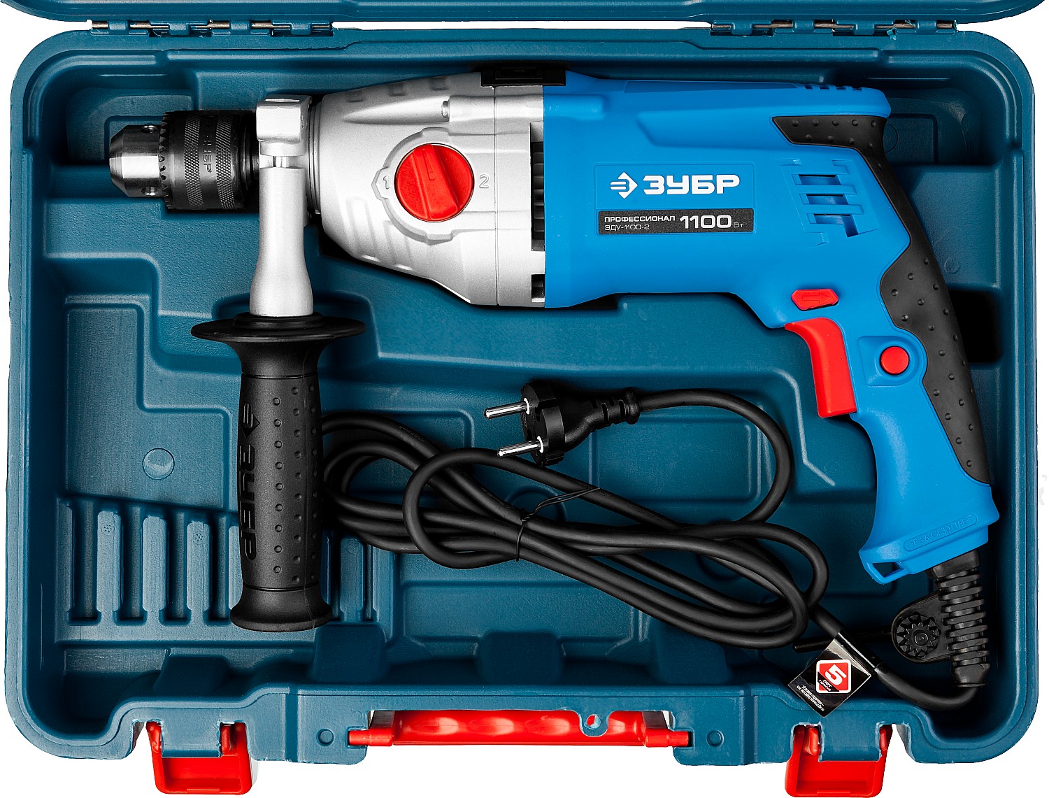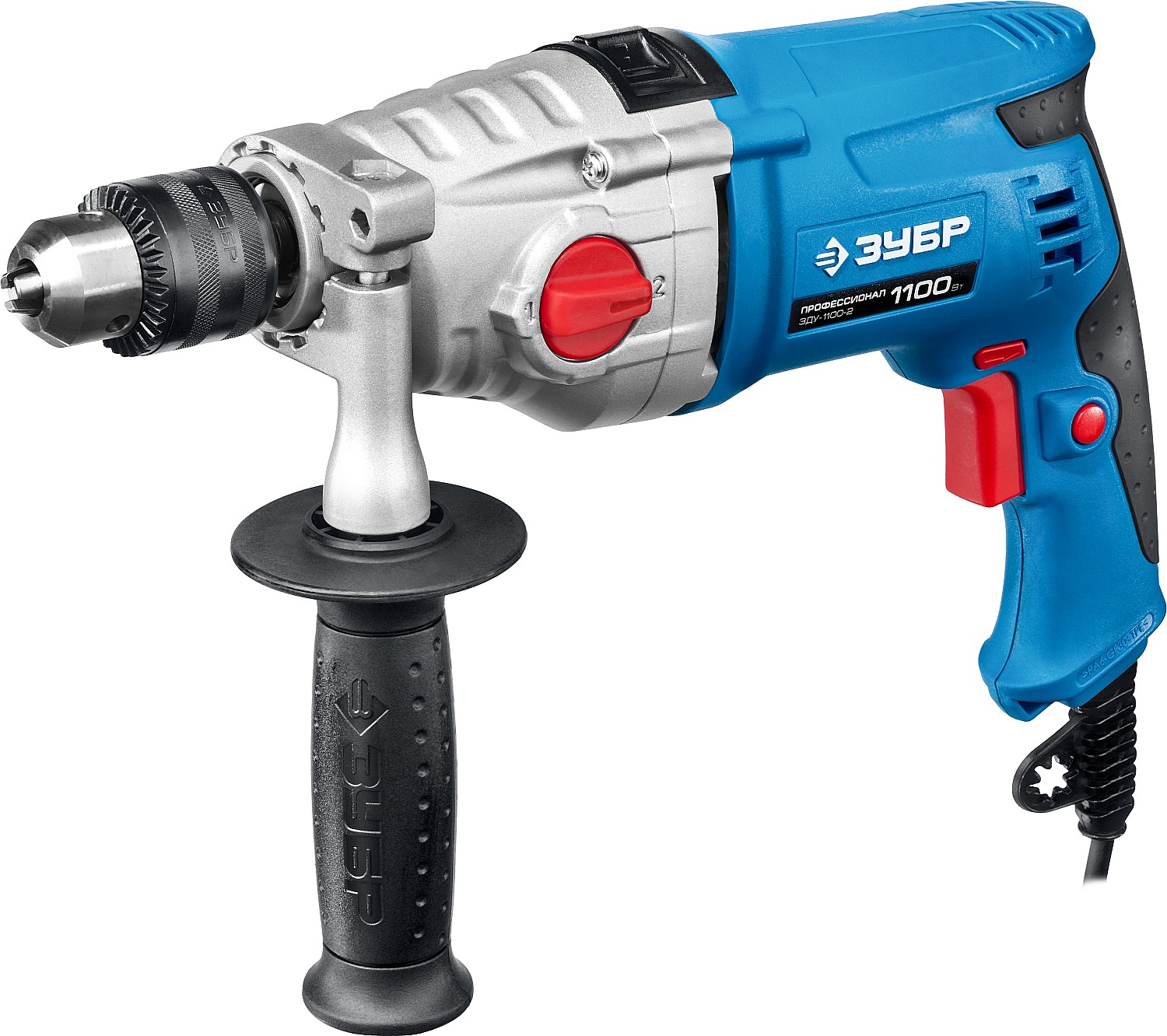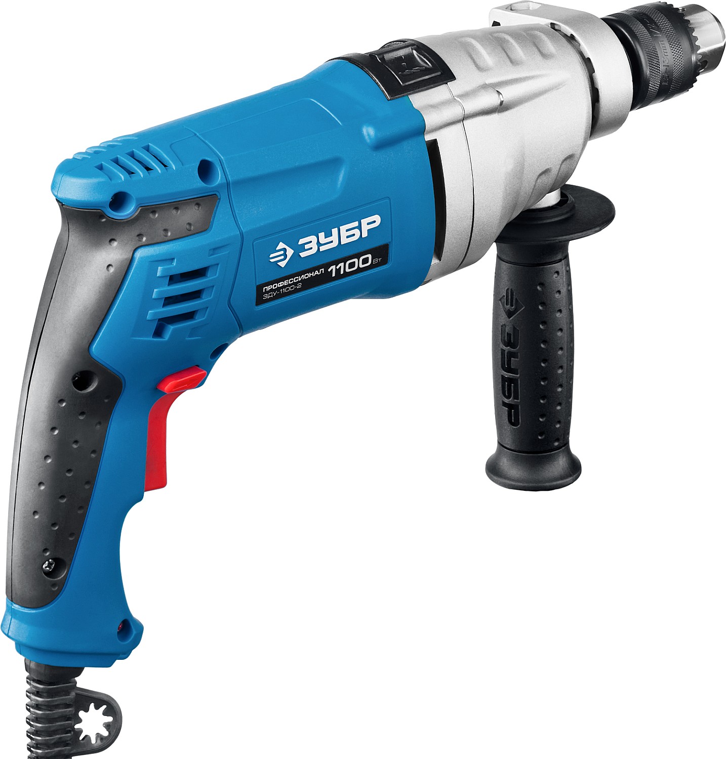- Надежное удержание дрели благодаря обрезиненной основной и удобной дополнительной рукояткам