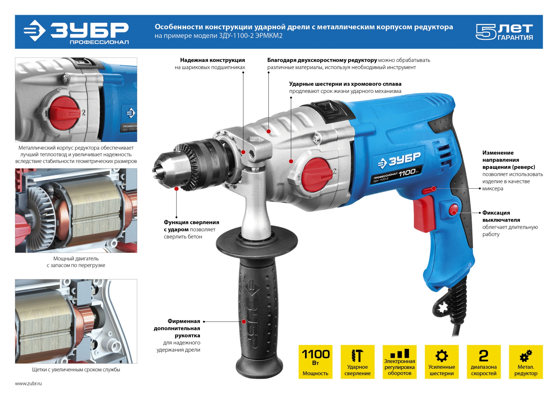 - Благодаря двухскоростному редуктору с широким диапазоном скоростей изделие может выполнять большой спектр задач: сверление, заворачивание, перемешивание, шлифование и т.д.