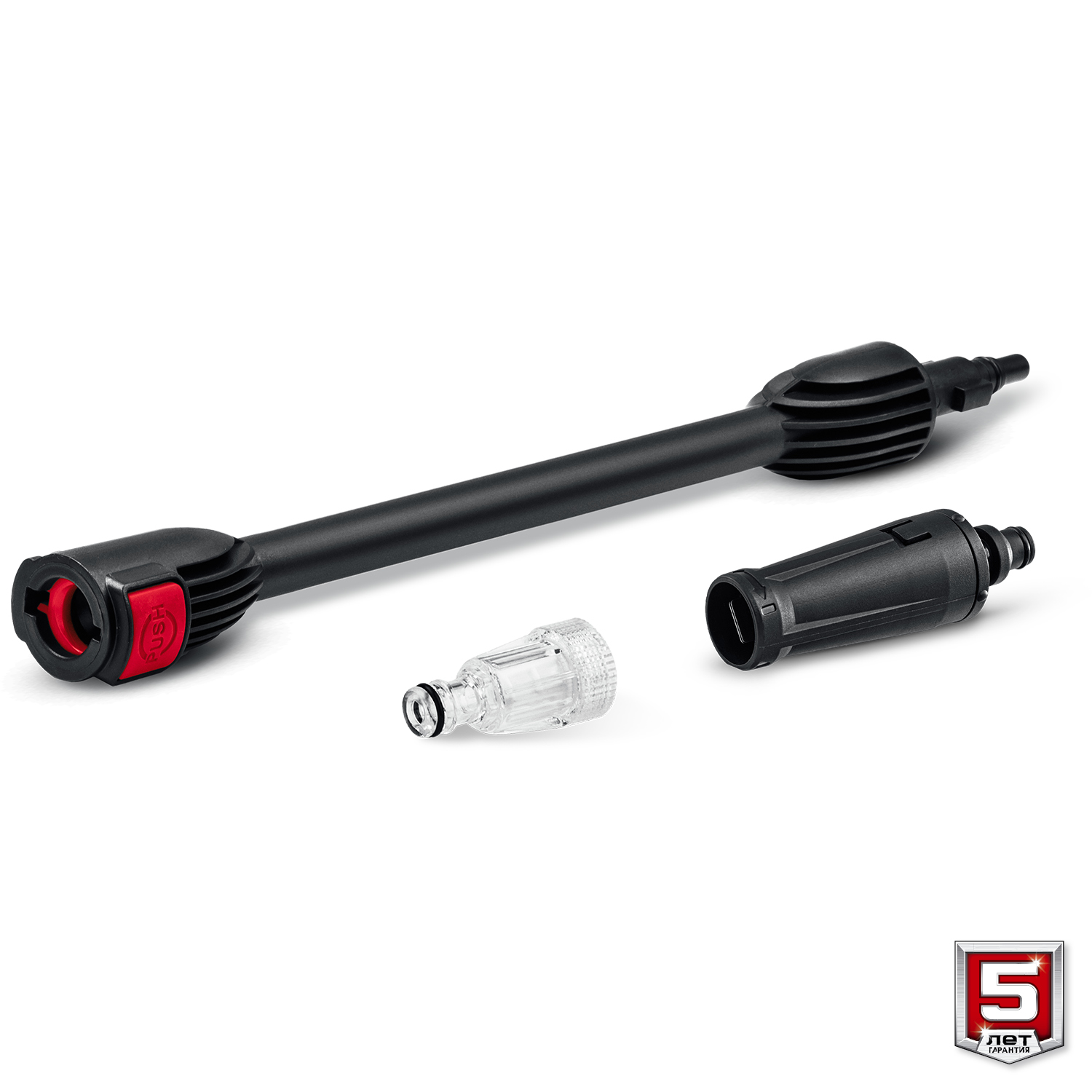 - Быстросъемное соединение шланга, распылителя и насадок позволяет оперативно собирать и переподключать компоненты