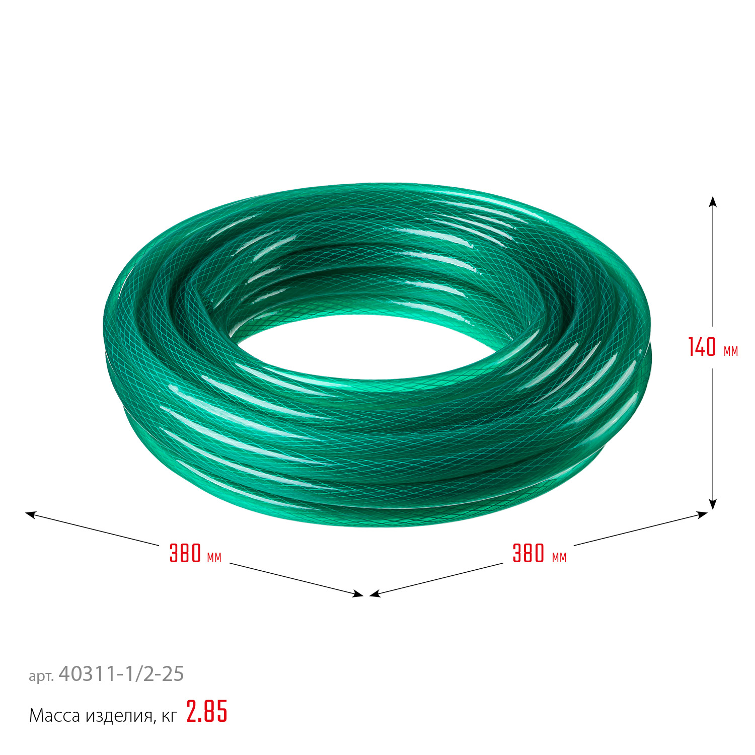 Эластичный трехслойный шланг изготовлен из высококачественного ПВХ и армирован прочными полиэстеровыми нитями. Высокая устойчивость формы шланга достигается благодаря особой технологии армировки: нити накладываются под оптимальным углом к горизонтальной оси шланга. За счет этого диаметр и длина шланга остаются стабильными. Используется при проведении поливочных или иных работ, требующих водоснабжения. Шланг поливочный трехслойный армированный используется для поливочных работ на садово-огородных участках. Шланг изготовлен из медицинского ПВХ, не токсичен, имеет гладкую внутреннюю поверхность, препятствующую образованию водорослей. Трубка шланга армирована высокопрочной полимерной нитью, которая предотвращает повреждение во время работы, тем самым обеспечивая надёжность и длительный срок службы изделия.