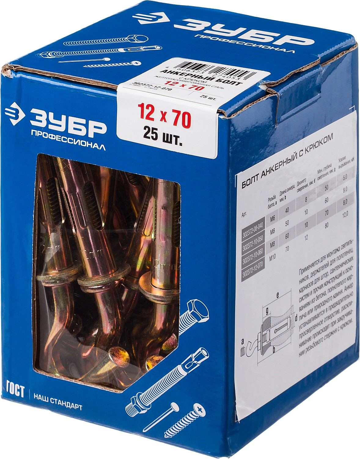 ЗУБР 12 х 70 мм, 25 шт, анкерный болт с крюком, Профессионал (302372-12-070)