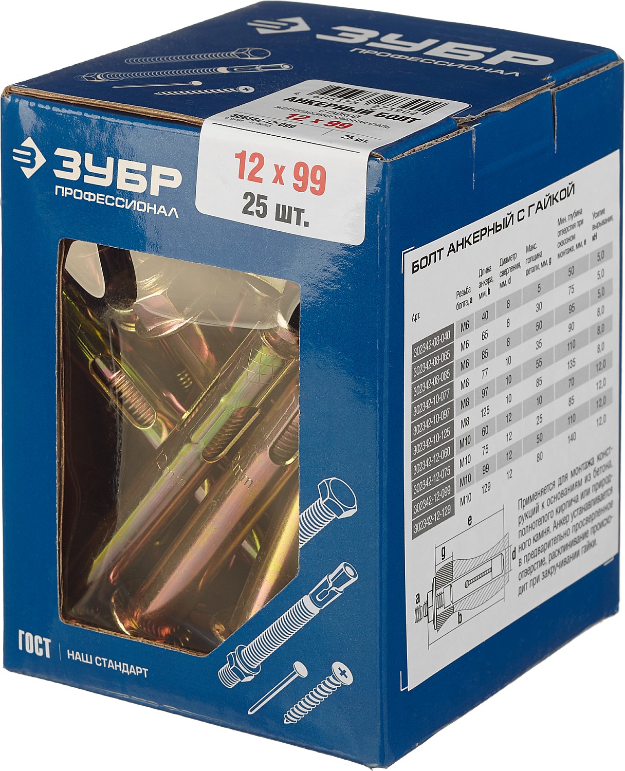 ЗУБР 12 х 99 мм, 25 шт, анкерный болт с гайкой, Профессионал (302342-12-099)