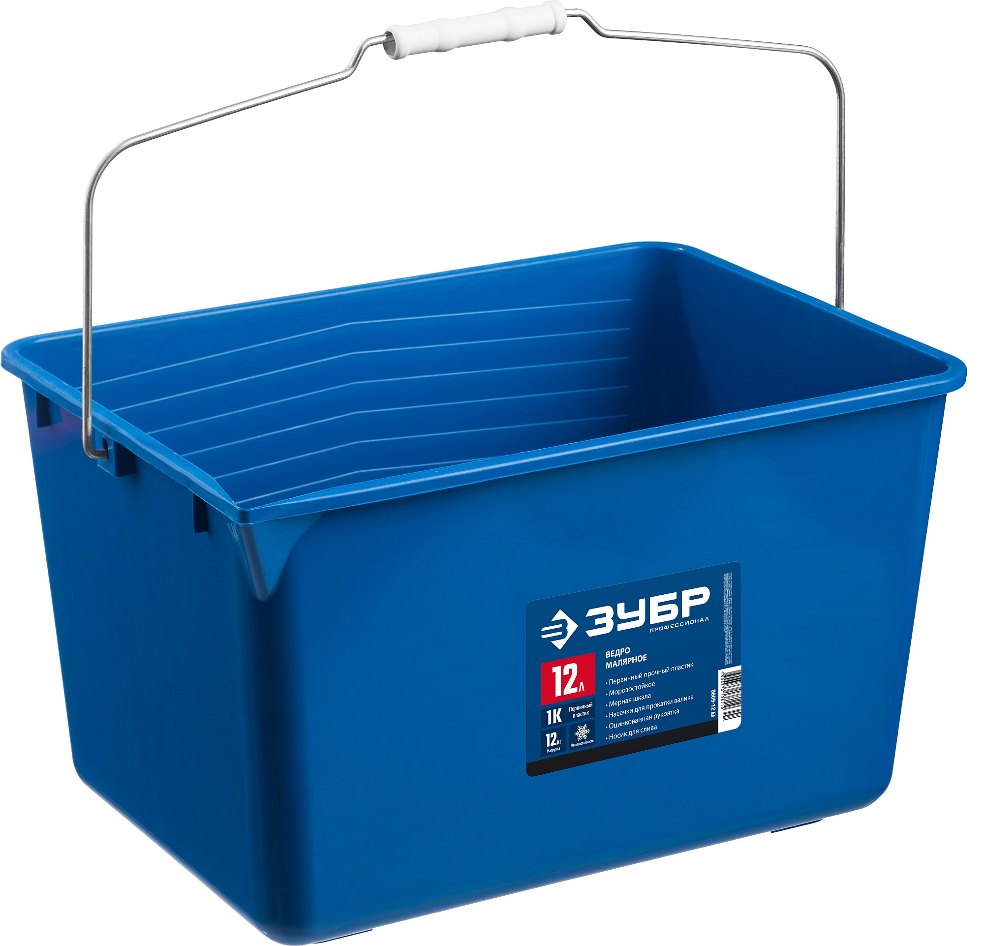 Форма ведра удобна для работы малярным валиком, специальный рельеф на стенке ведра позволит равномерно распределить краску или лак по поверхности валика, а градуировка на стенке повышает точность подбора цвета при смешивании лакокрасочных материалов. Имеет оцинкованную рукоятку и удобный носик для слива. Изготовлено из высокопрочной морозостойкой пластмассы.