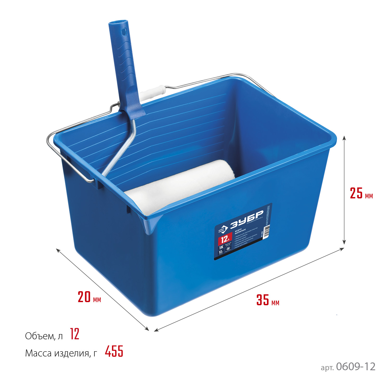 Для работы малярным валиком, а также для разлива, смешивания и переноски лакокрасочных материалов.