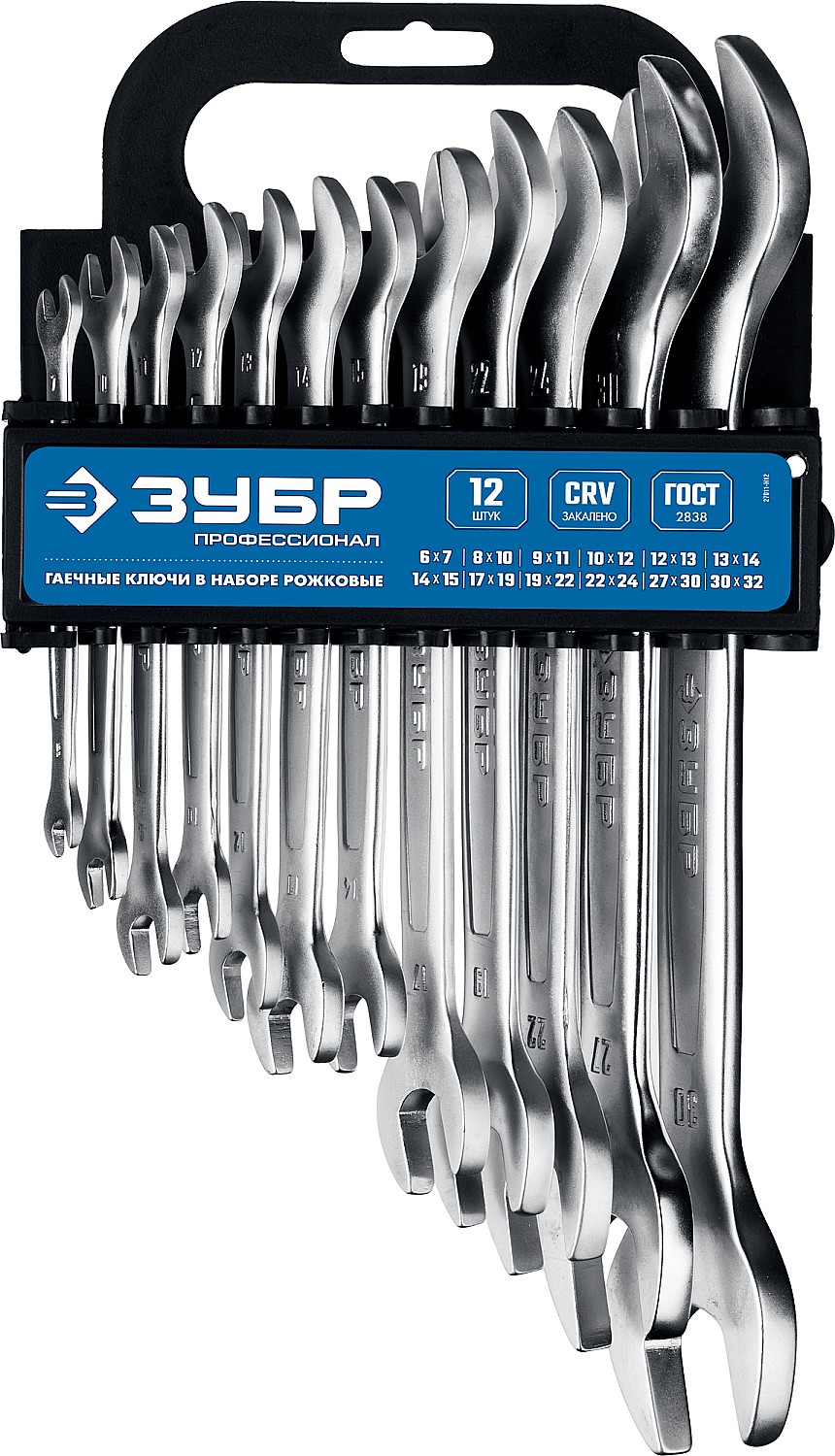 ЗУБР 12 шт, 6 - 32 мм, набор рожковых гаечных ключей, Профессионал (27011-H12)