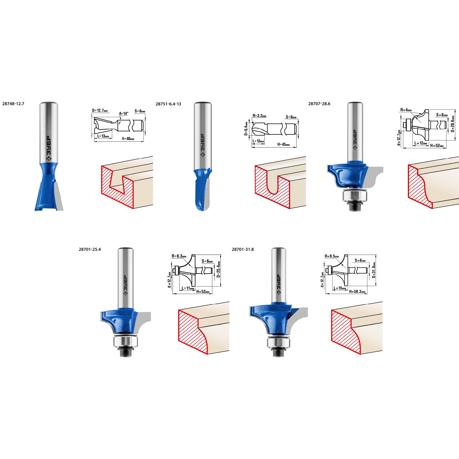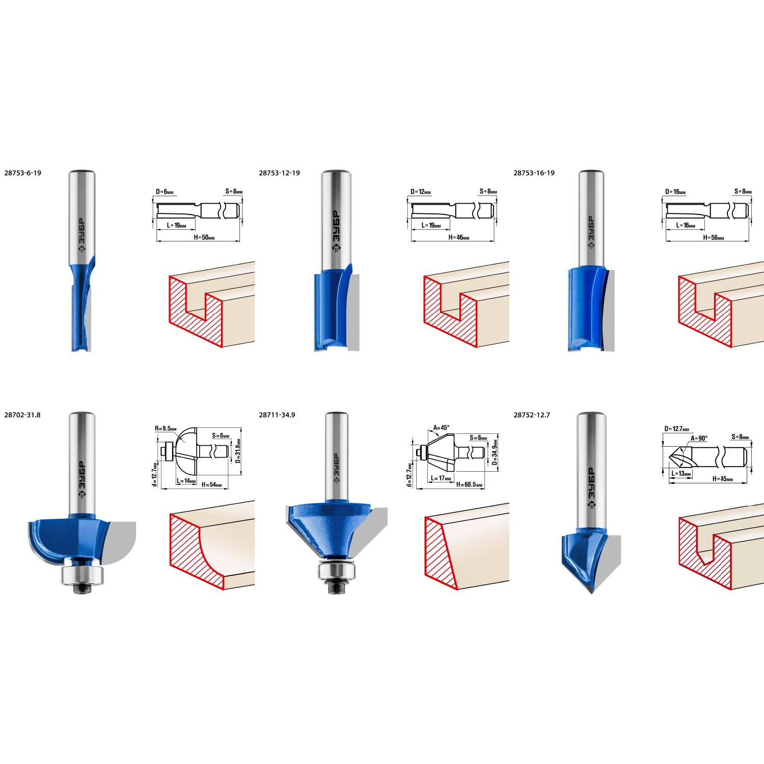 Набор фрез отлично подходит для профилирования кромок, изготовления декоративных пазов и рисунков, фрезерования канавок при работе с различными видами древесины.