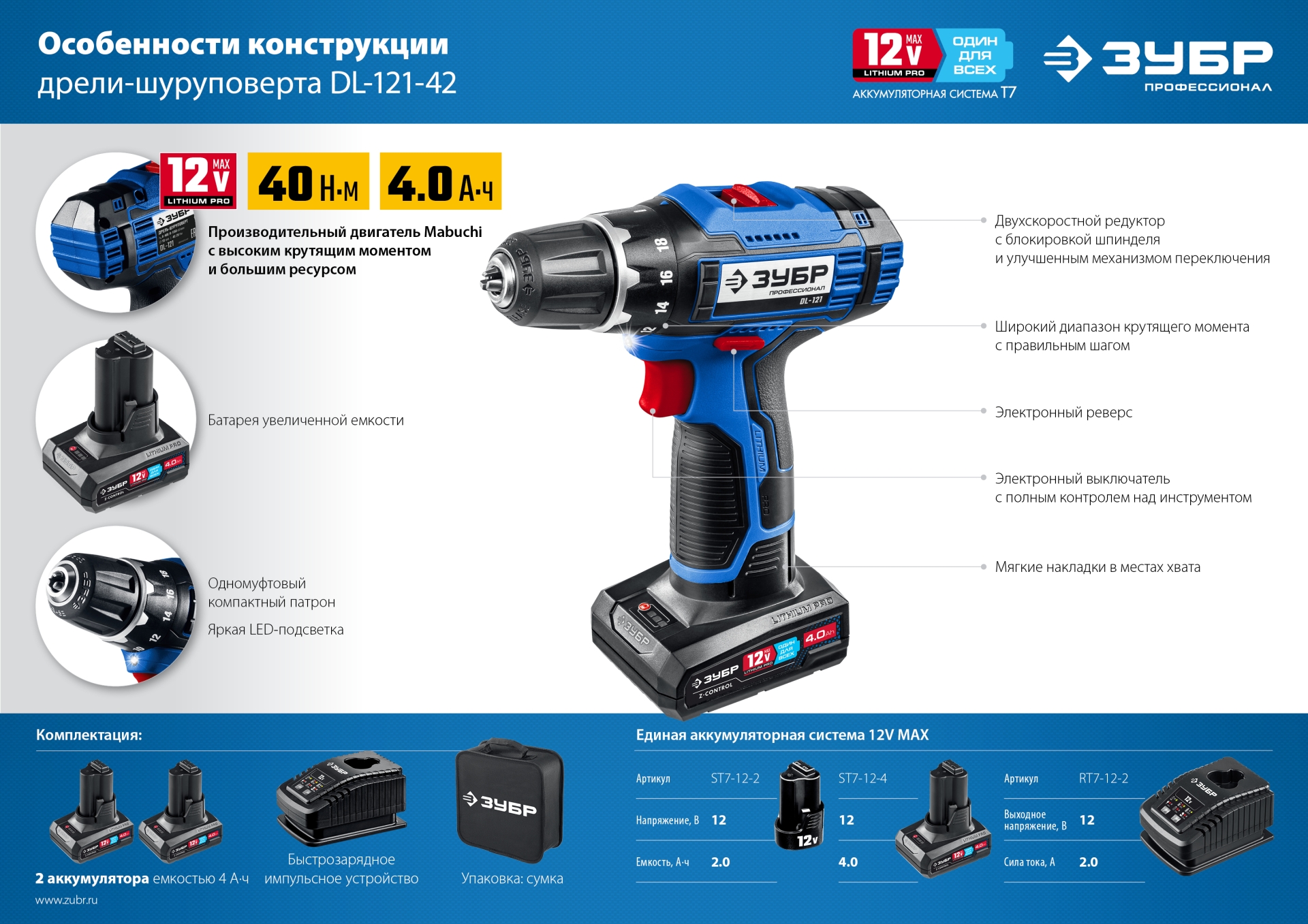 - отсутствие потери мощности в процессе работы - Дополнительный аккумулятор в комплекте для исключения простоев в работе