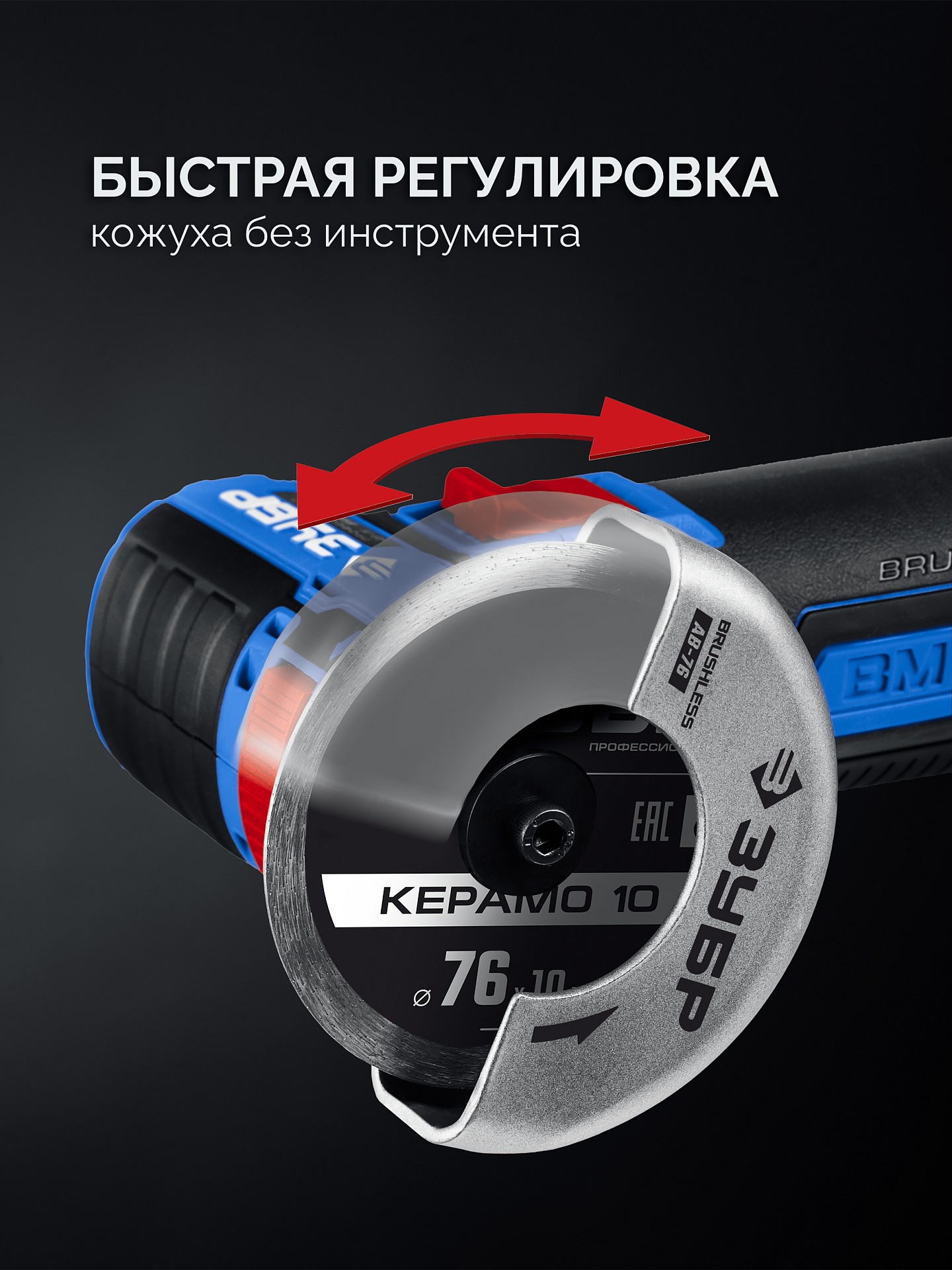 - Защитный кожух диска с мгновенной регулировкой положения