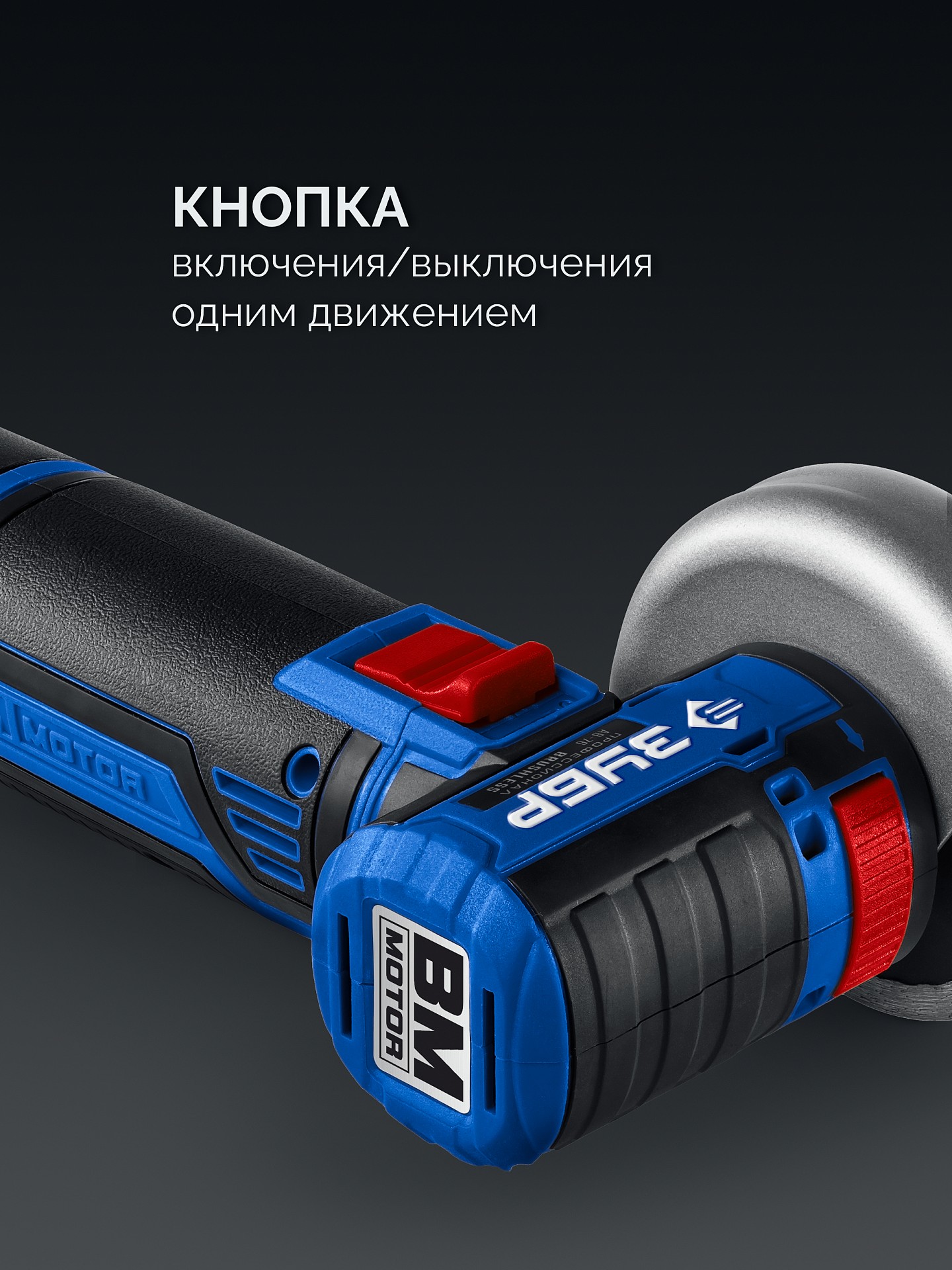 - защита от повторного пуска при установке батареи с включенным выключателем - Быстрый тормоз вала для сокращения выбега при выключении