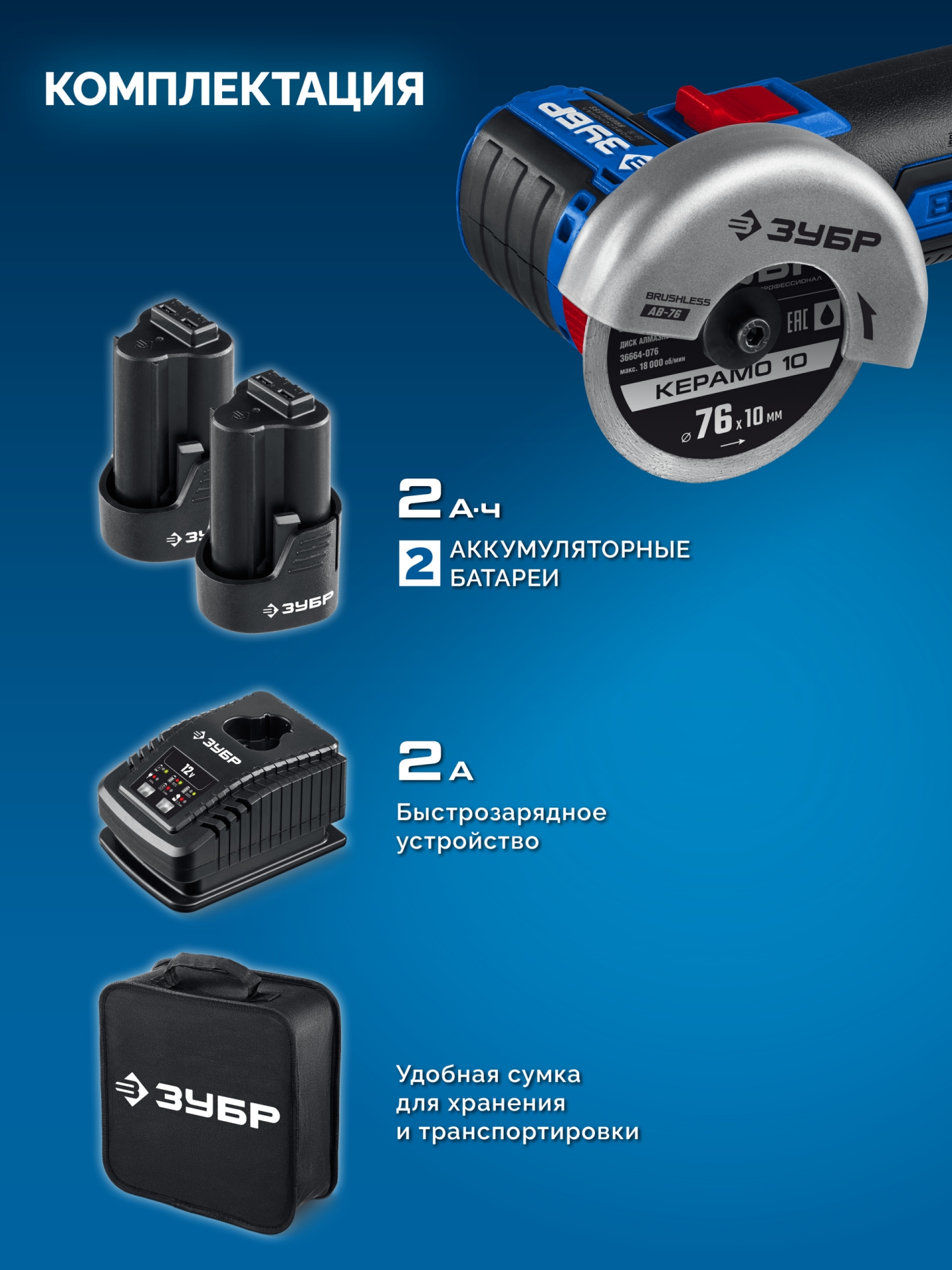 - отсутствие потери мощности в процессе работы - Две батареи увеличенной емкости в комплекте для безостановочной работы