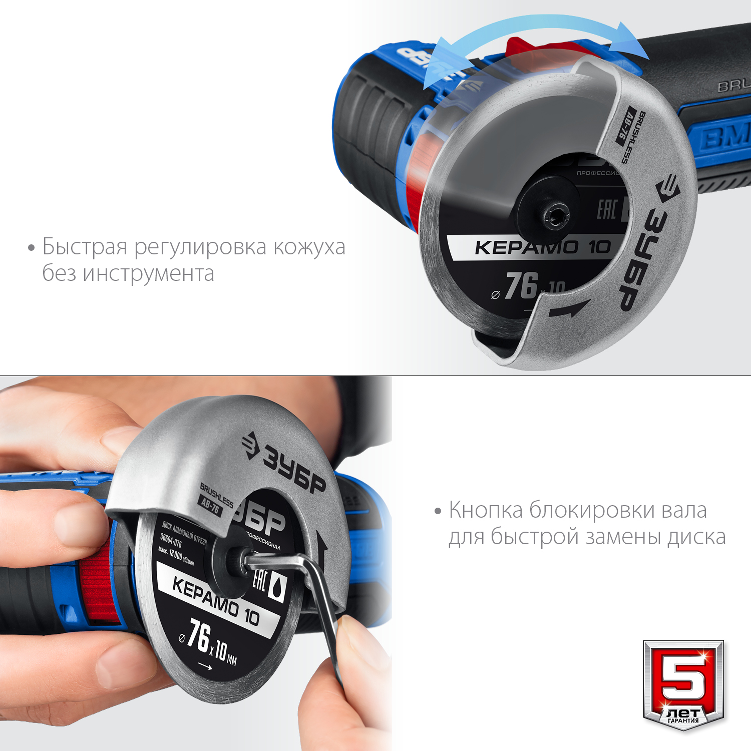 - Защитный кожух диска с мгновенной регулировкой положения