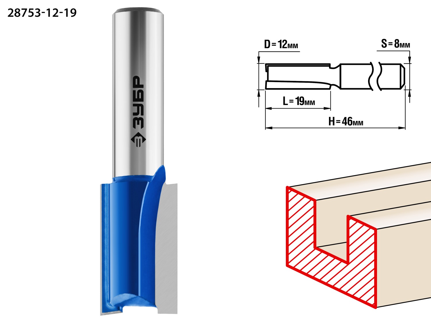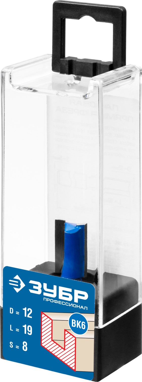 ЗУБР 12 x 19 мм, хвостовик 8 мм, фреза пазовая прямая, Профессионал (28753-12-19)