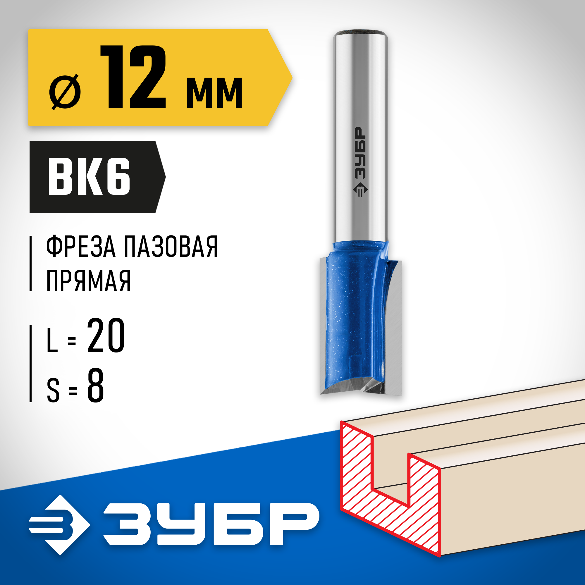 ЗУБР 12 x 19 мм, хвостовик 8 мм, фреза пазовая прямая с нижними подрезателями, Профессионал (28755-12-19)