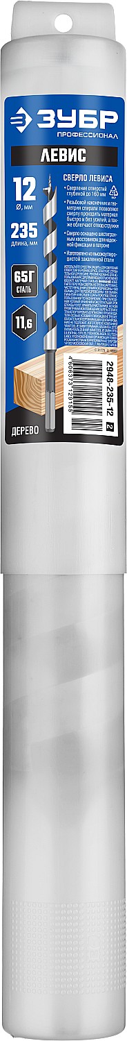 ЗУБР 12 x 235/160 мм, шестигранный хвостовик, сверло левиса по дереву, Профессионал (2948-235-12)